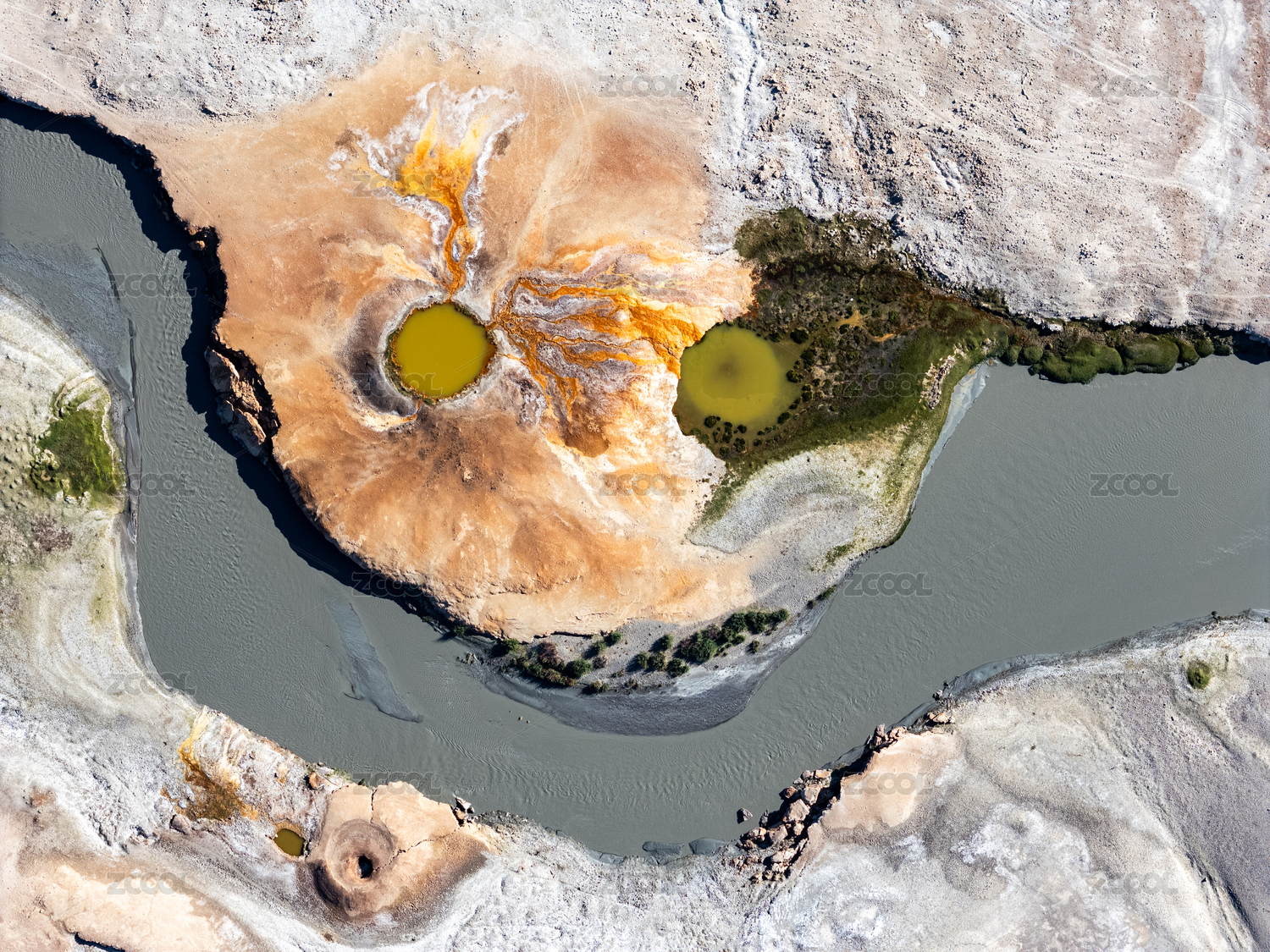 美国黄石国家公园里一个含硫磺的温泉的特写