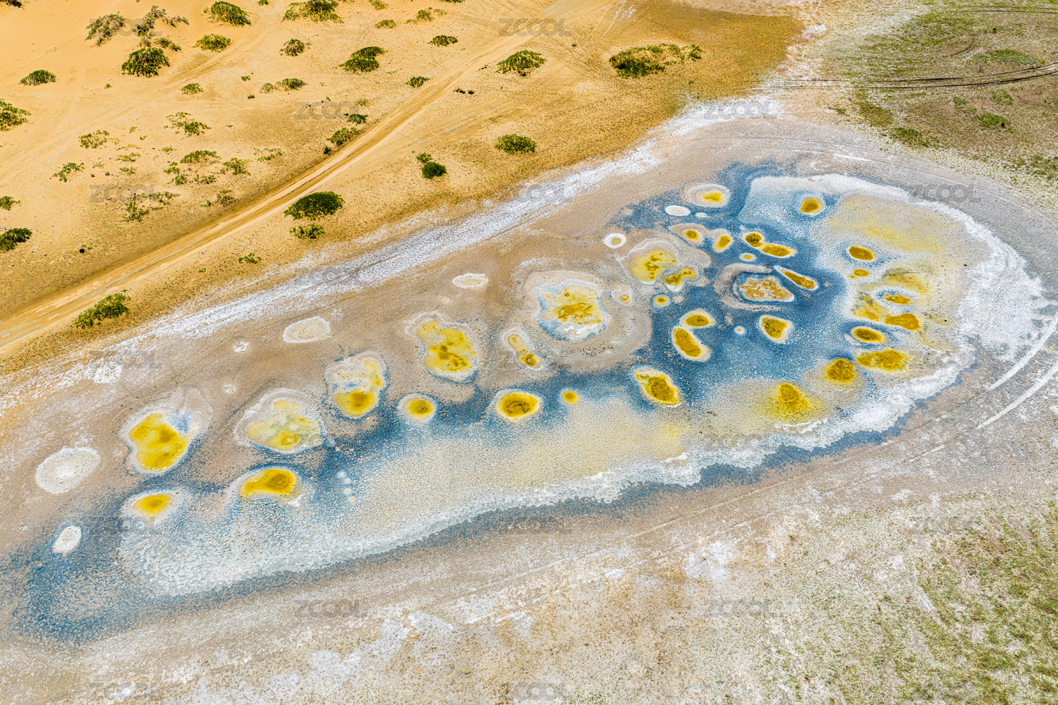 内蒙古阿拉善腾格里沙漠多彩的湖泊