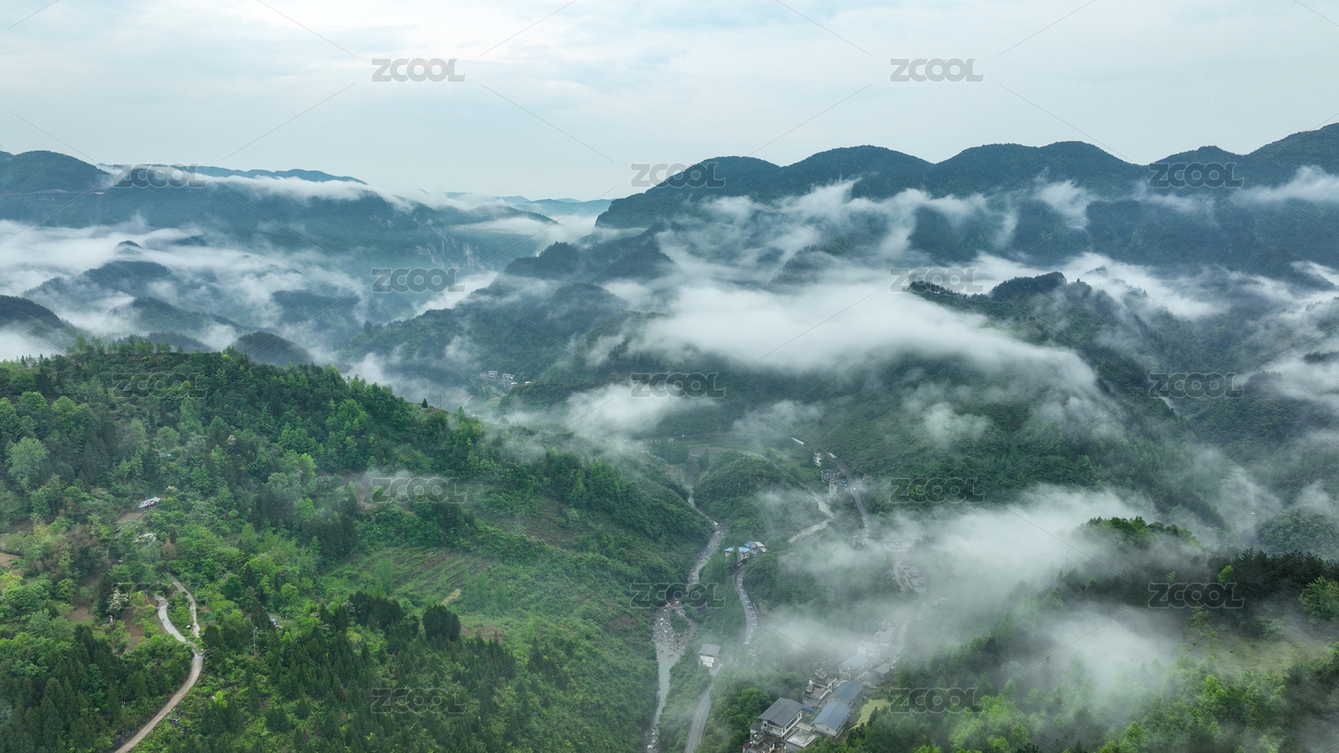 重庆酉阳雨中乡村薄雾袅绕美若仙境