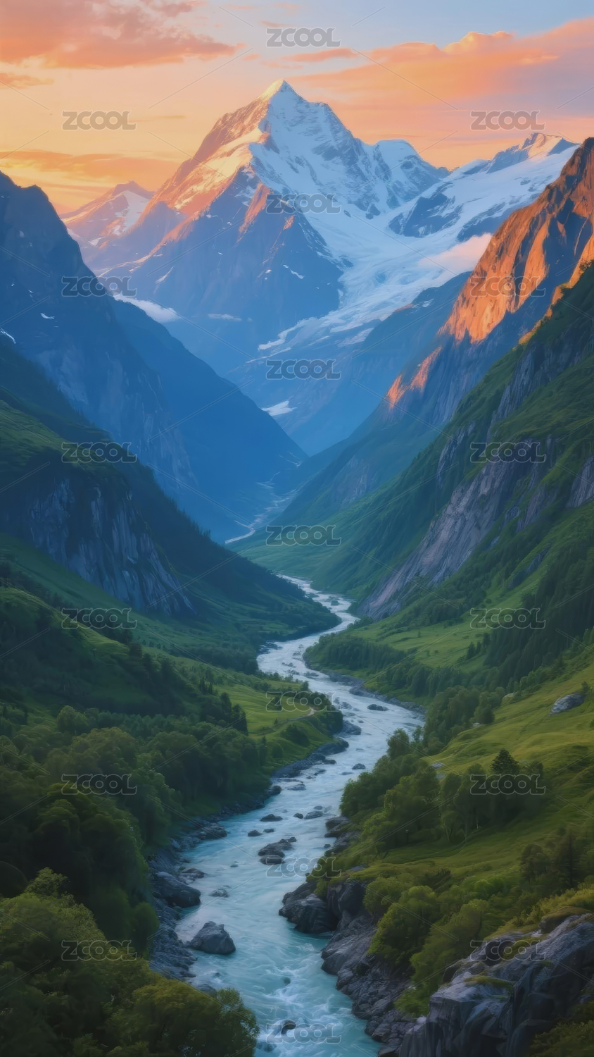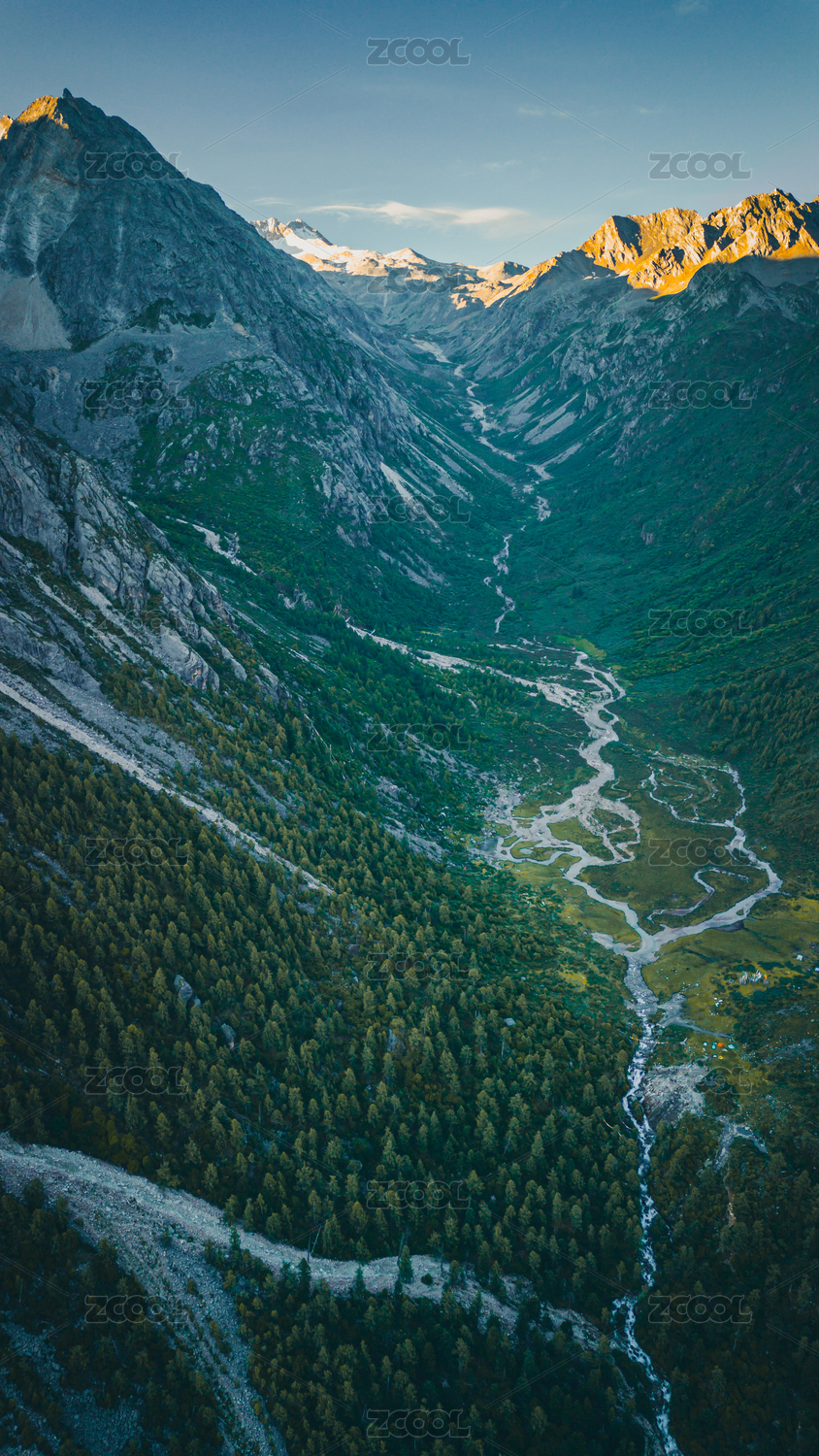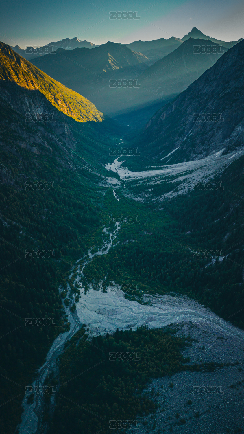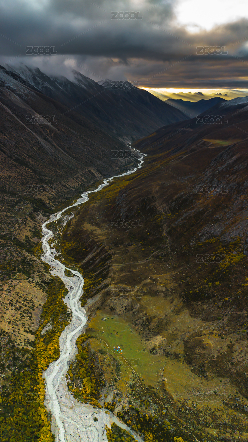日落,山川,河谷,河流,川西,航拍视角,山脉,风景,日出,高山