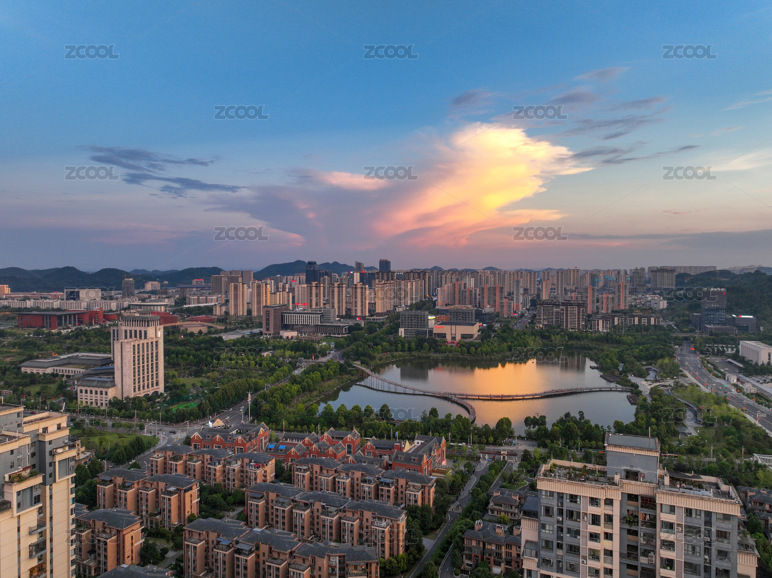 贵州省遵义市新蒲新区,城市上空的晚霞