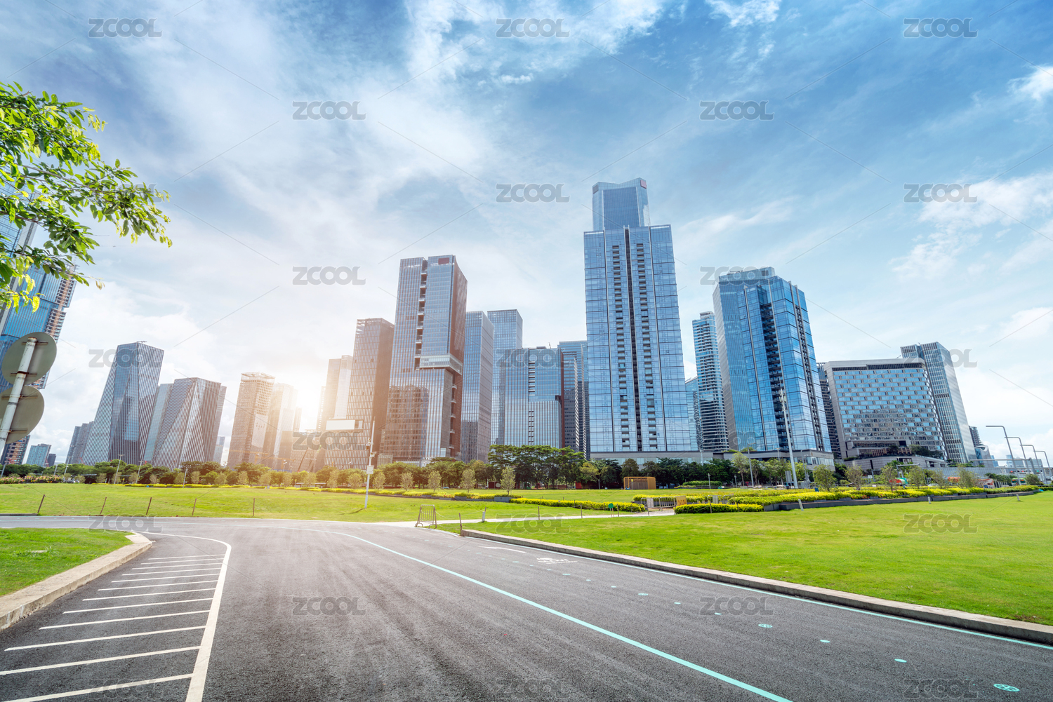 中国深圳前海CBD建筑风光和大草坪