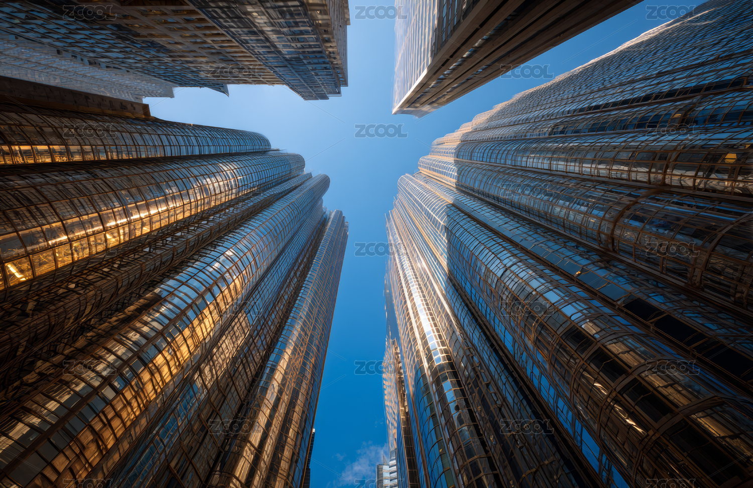 城市摩天大楼向上看视角