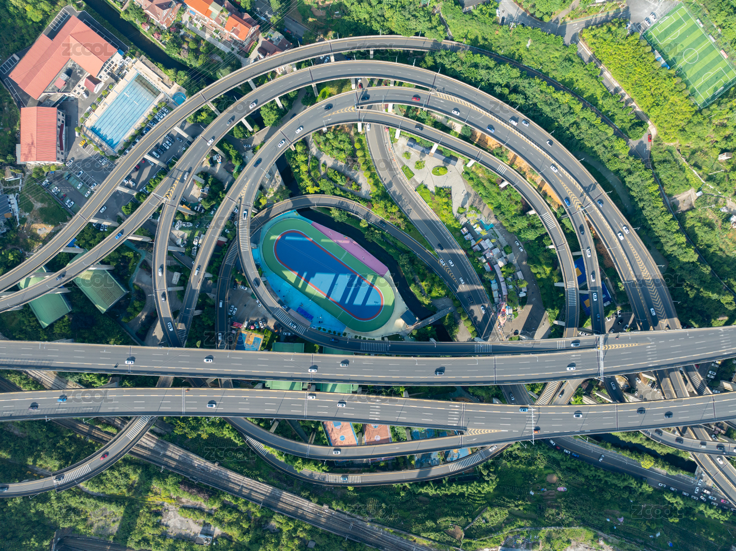 高空航拍四川成都大型公路高铁立交桥