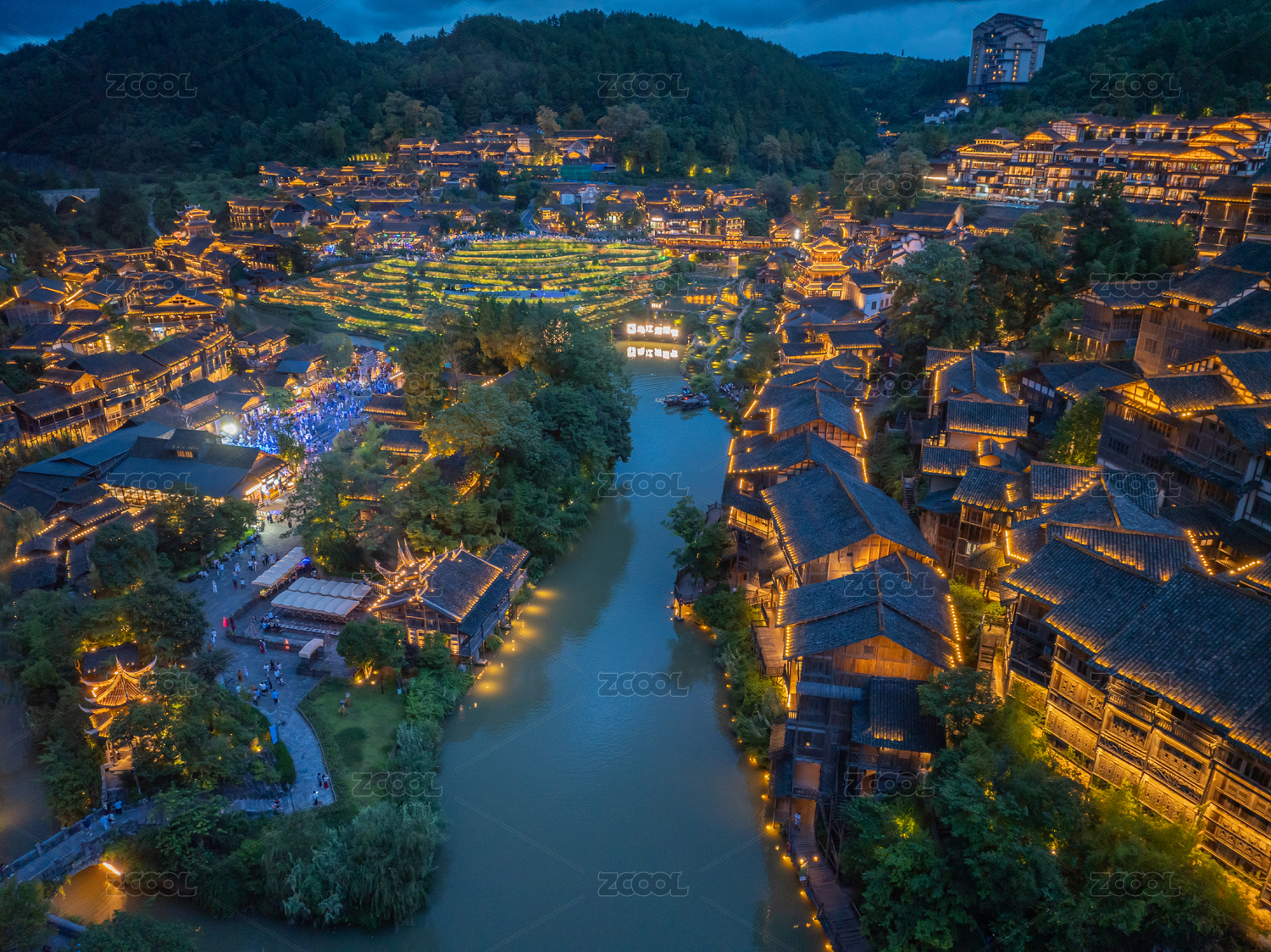 贵州,遵义,乌江寨,夜景,航拍,景区