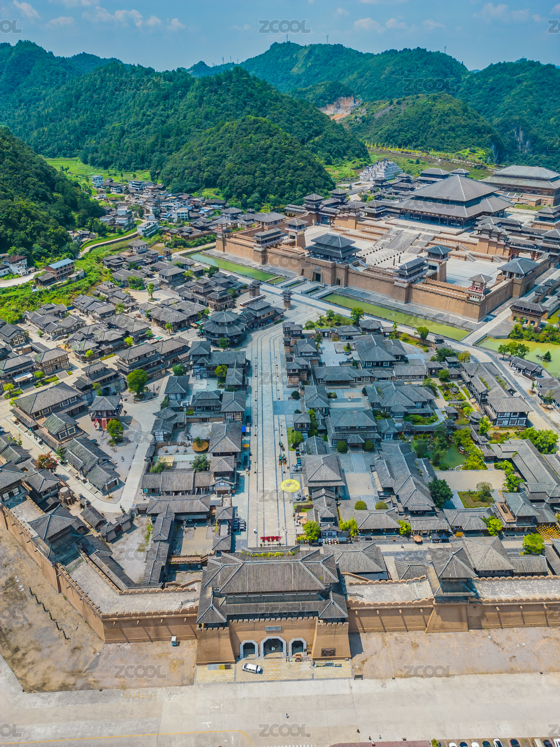 中国贵州省黔南州都匀市秦汉影视城航拍