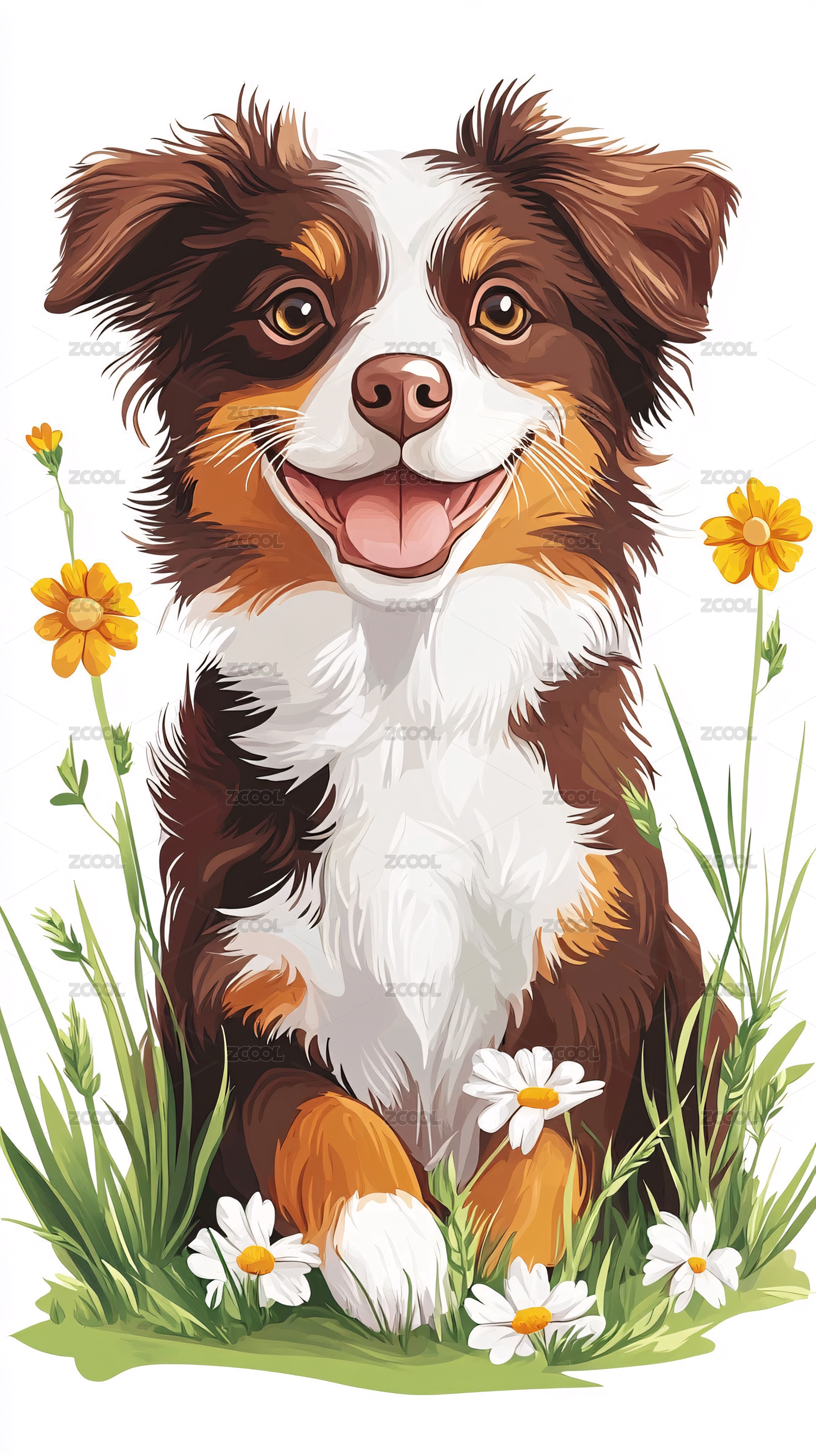 手绘写实插画动物狗