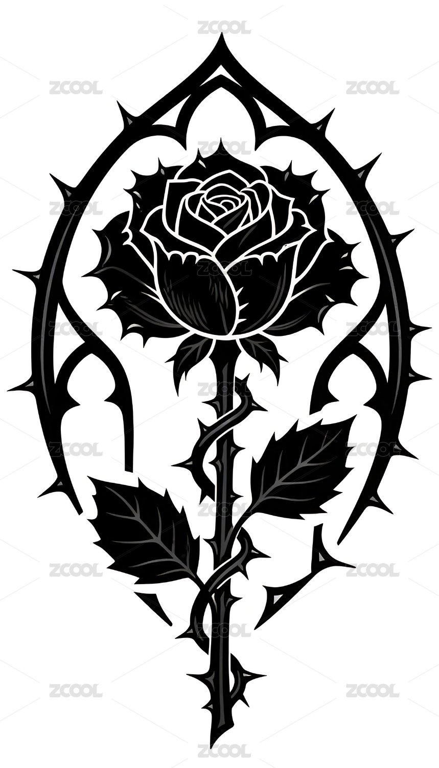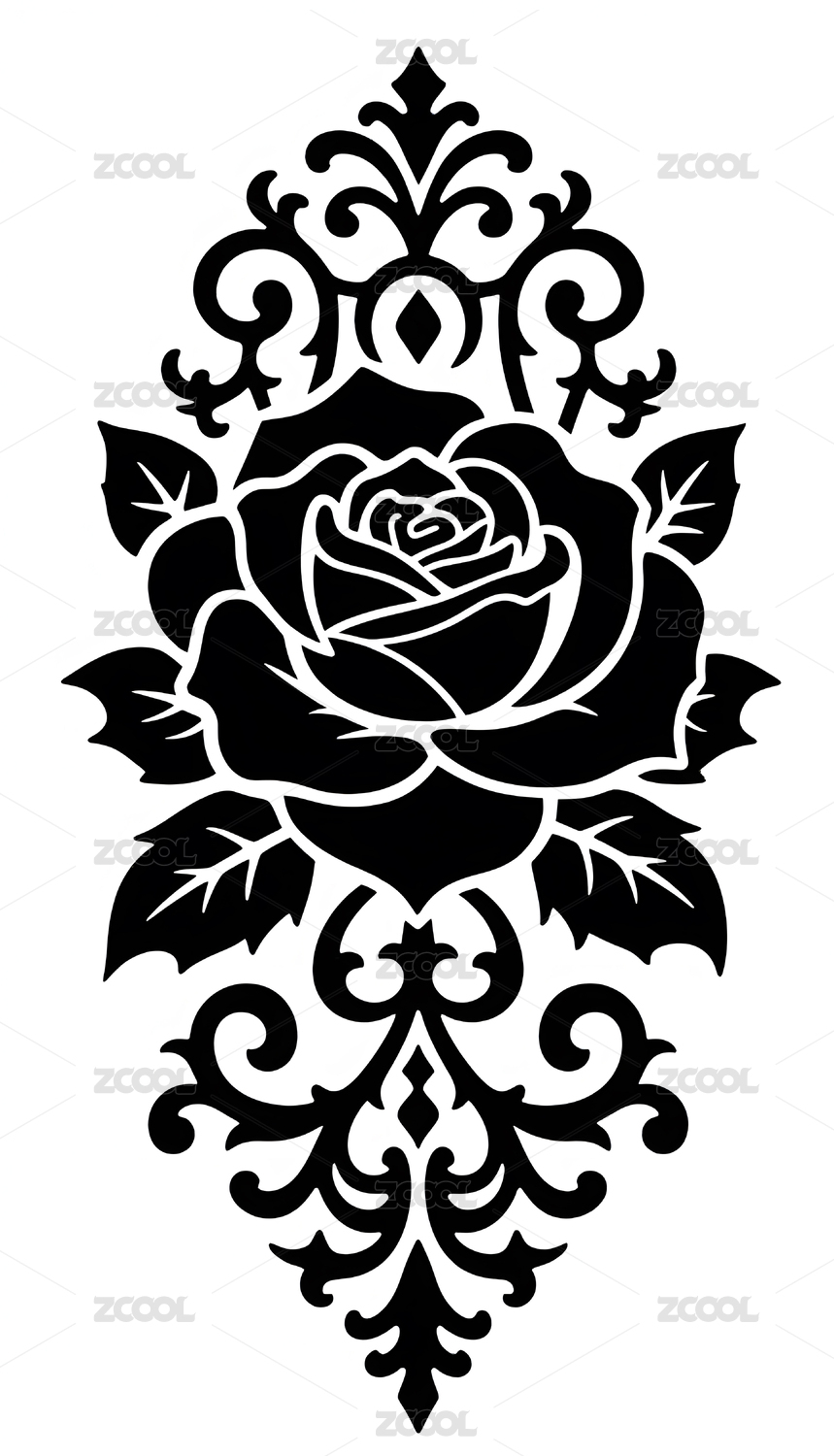 黑色,图案,花纹,哥特,复古,恶魔,纹身,玫瑰花,荆棘