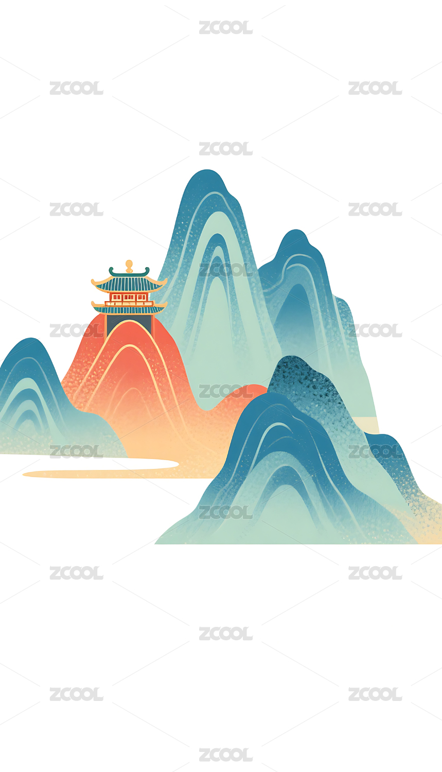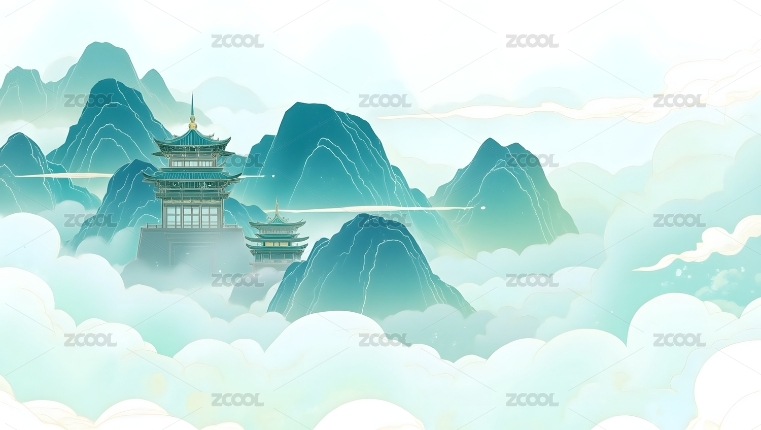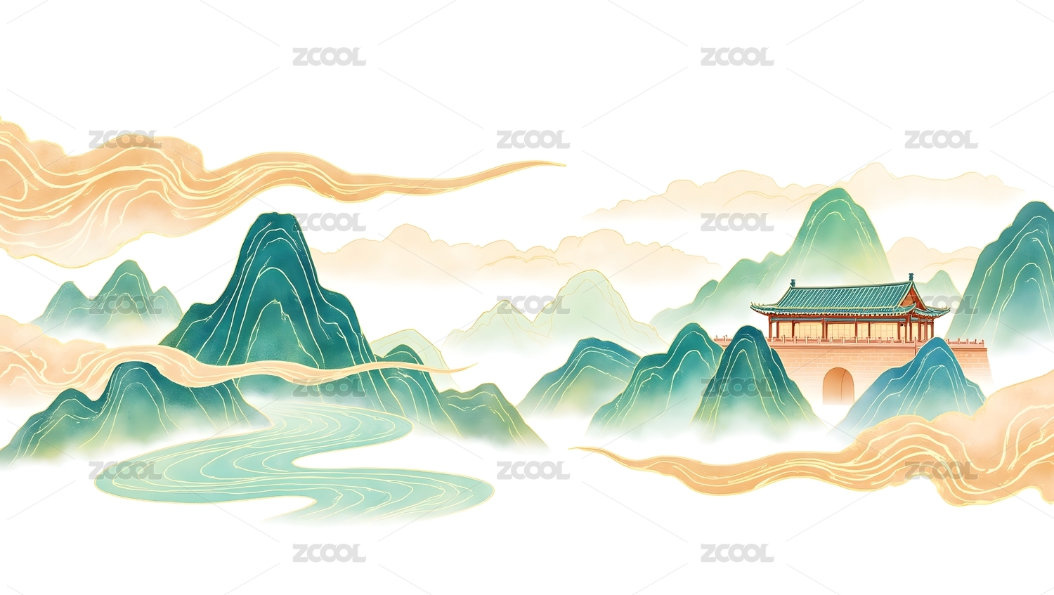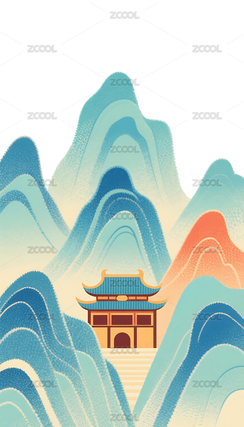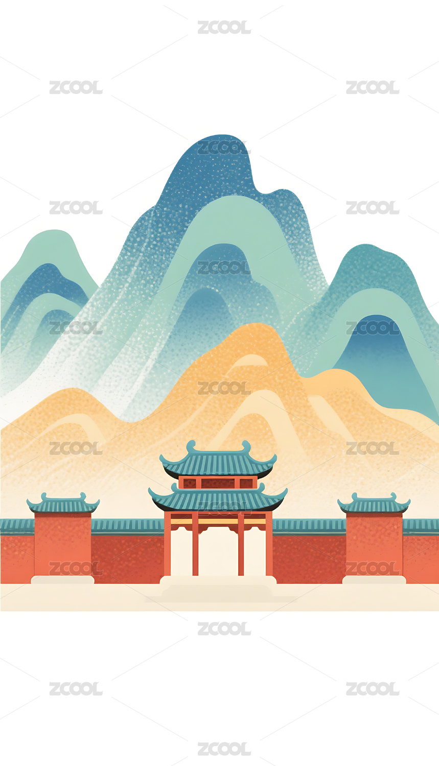 国潮风格,古风,国风,插画,古建筑,建筑,背景,素材,壁纸,山水