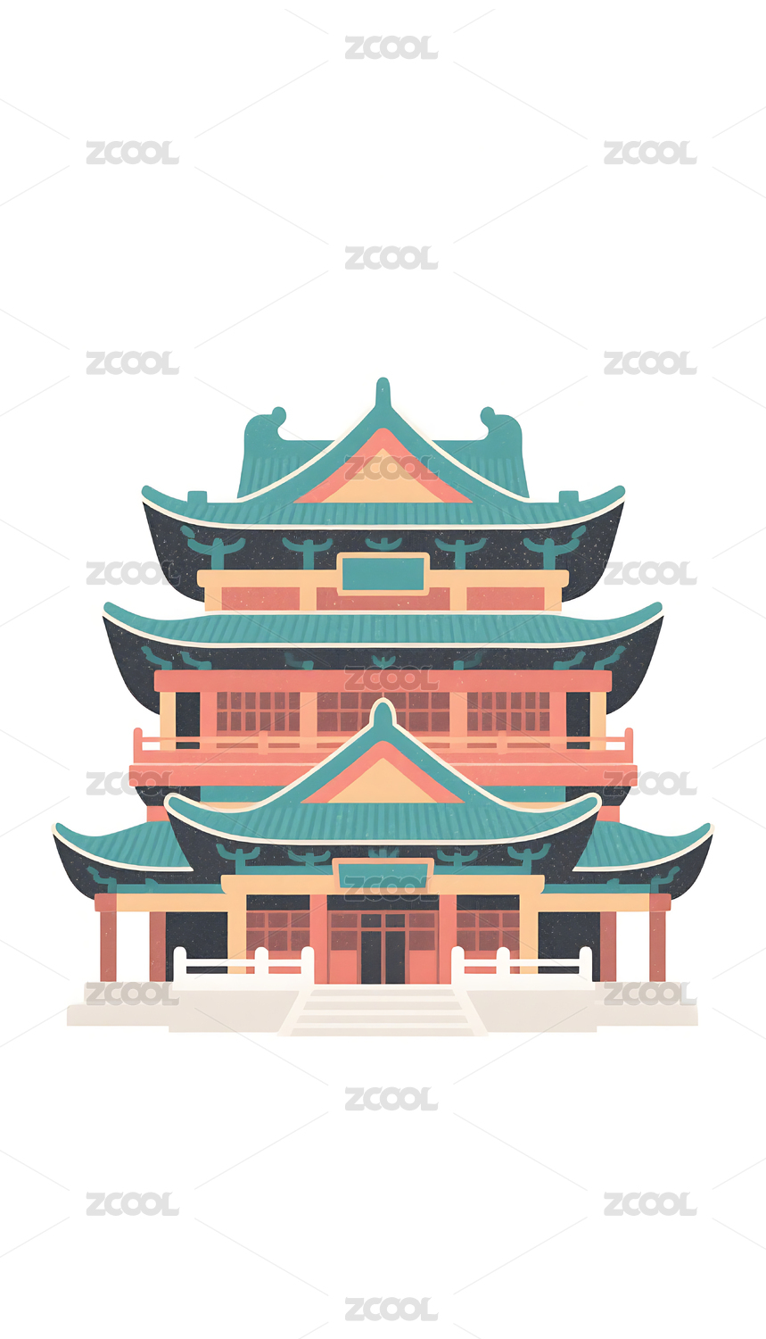 国潮风格古建筑插画素材