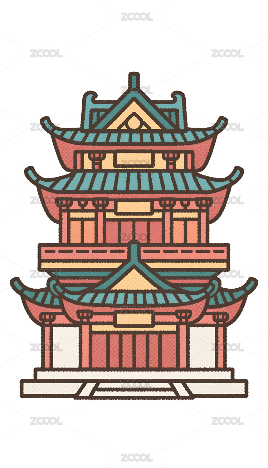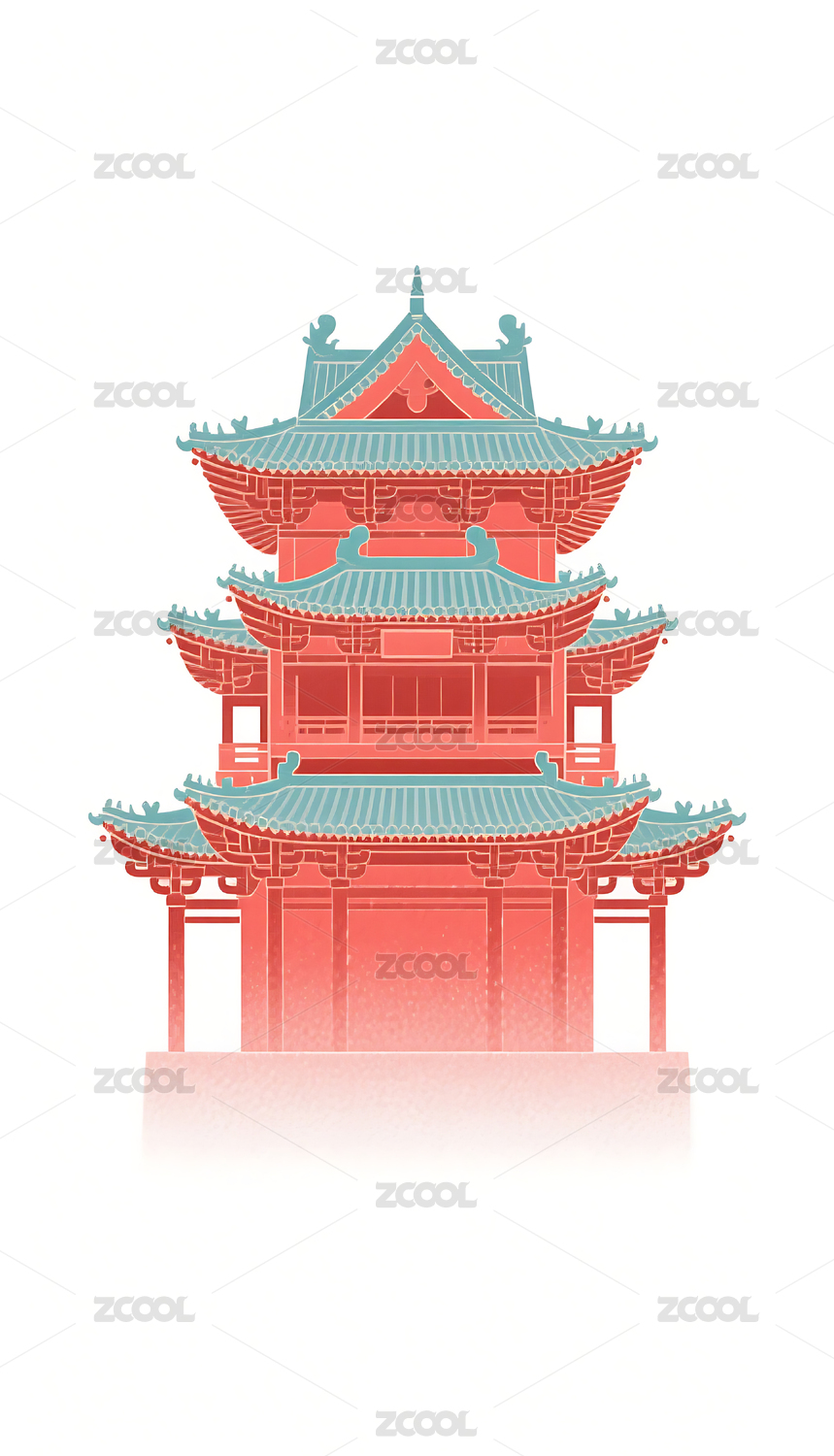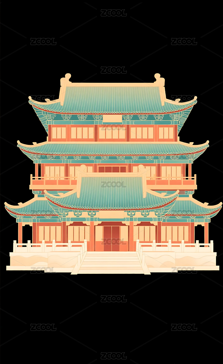 国潮风格,古风,国风,插画,建筑,背景,素材,壁纸,古建筑