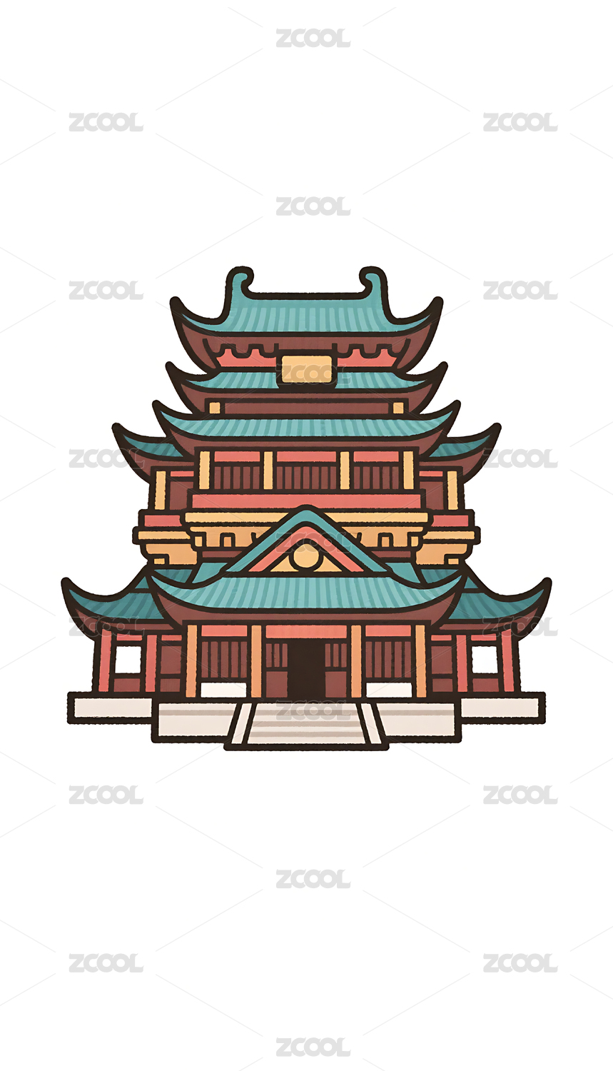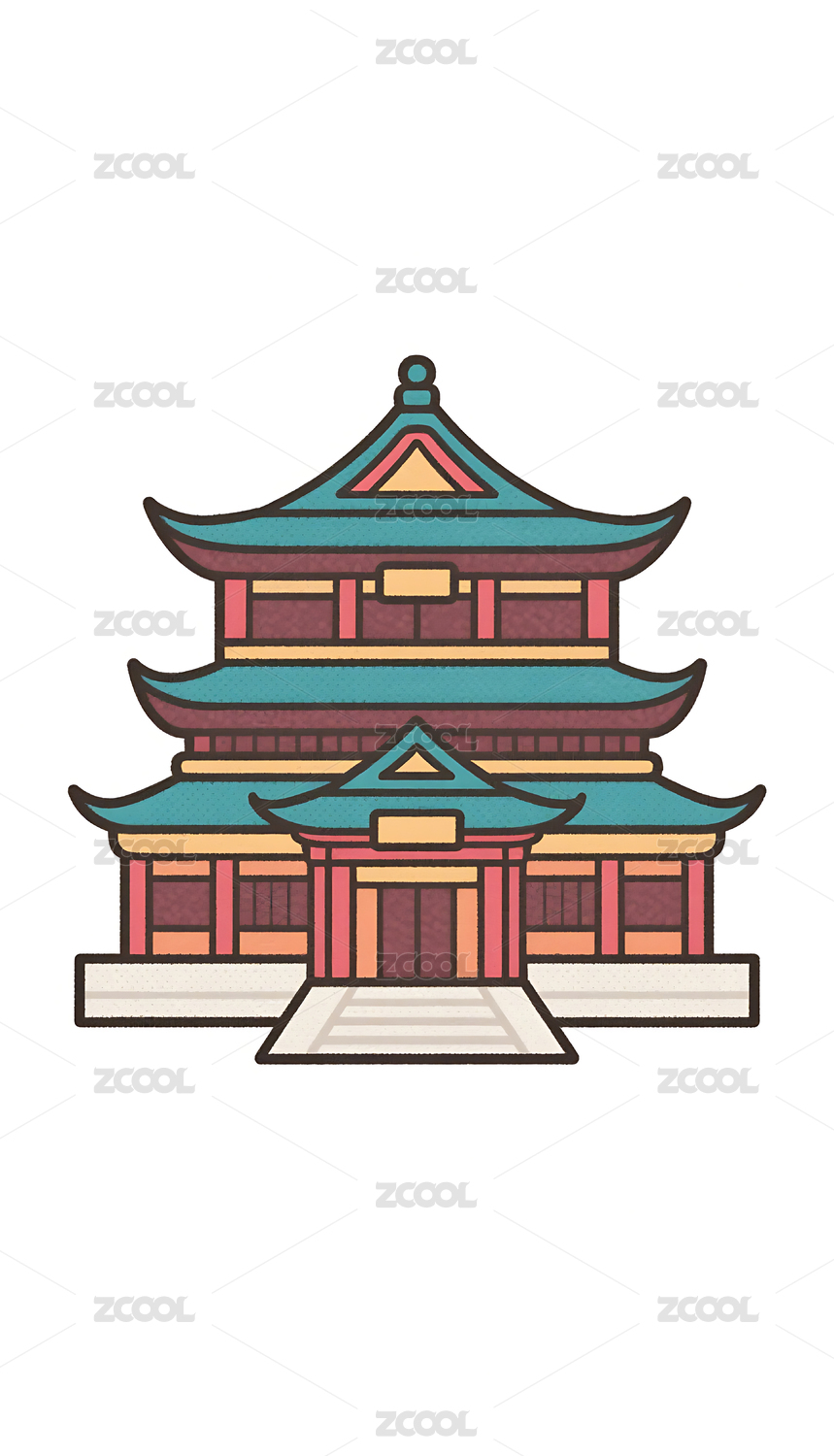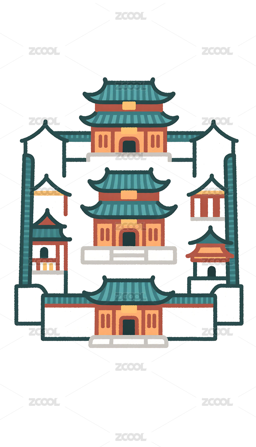 国潮风格,古风,国风,插画,建筑,背景,素材,壁纸,古建筑