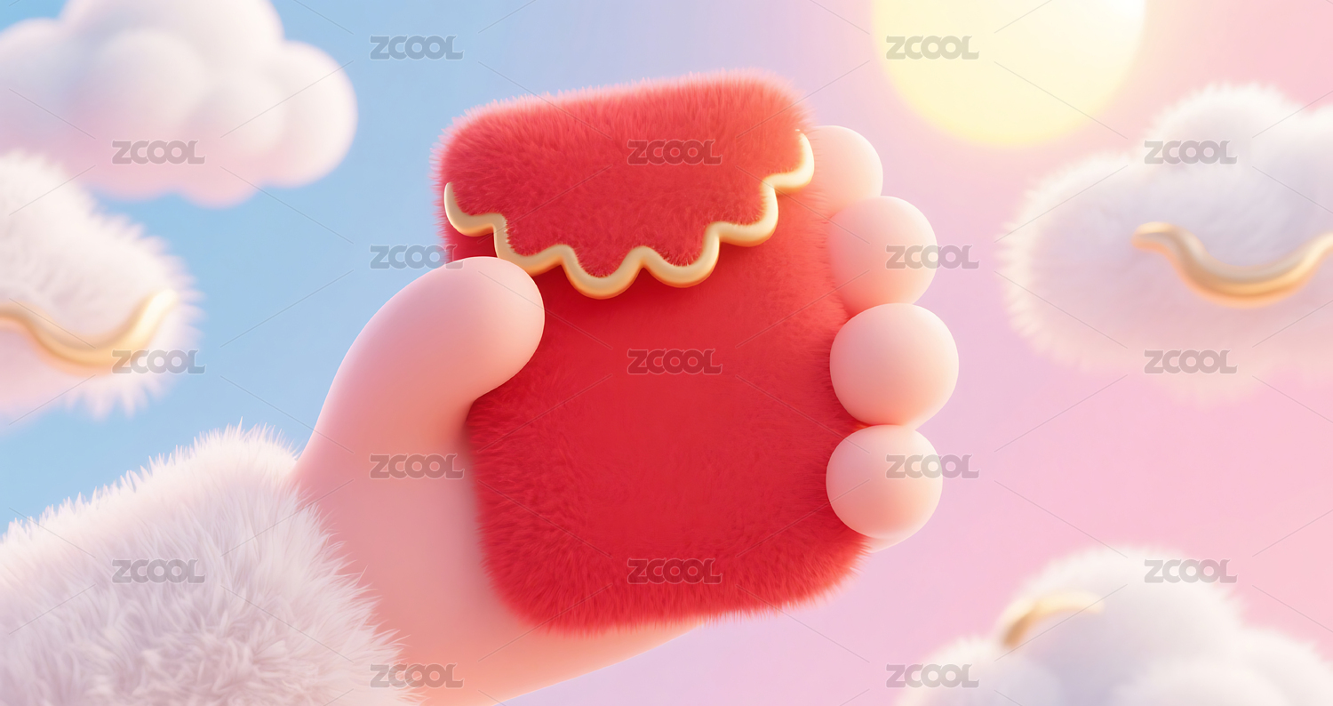 毛茸茸,毛绒绒,质感,电商,红包,手,天空,白云,蓝天,立体