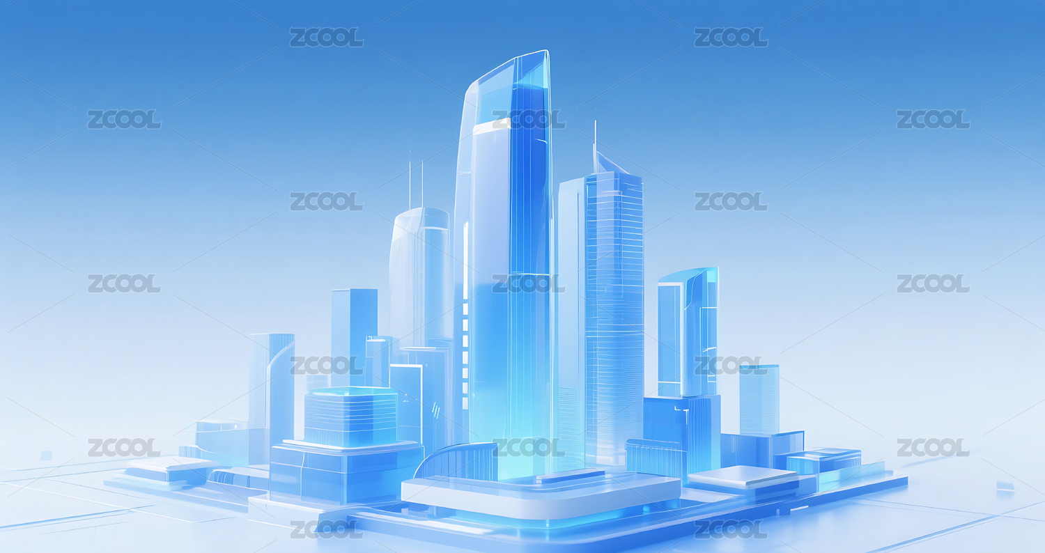 蓝色商务科技未来玻璃质感图形设计城市建筑