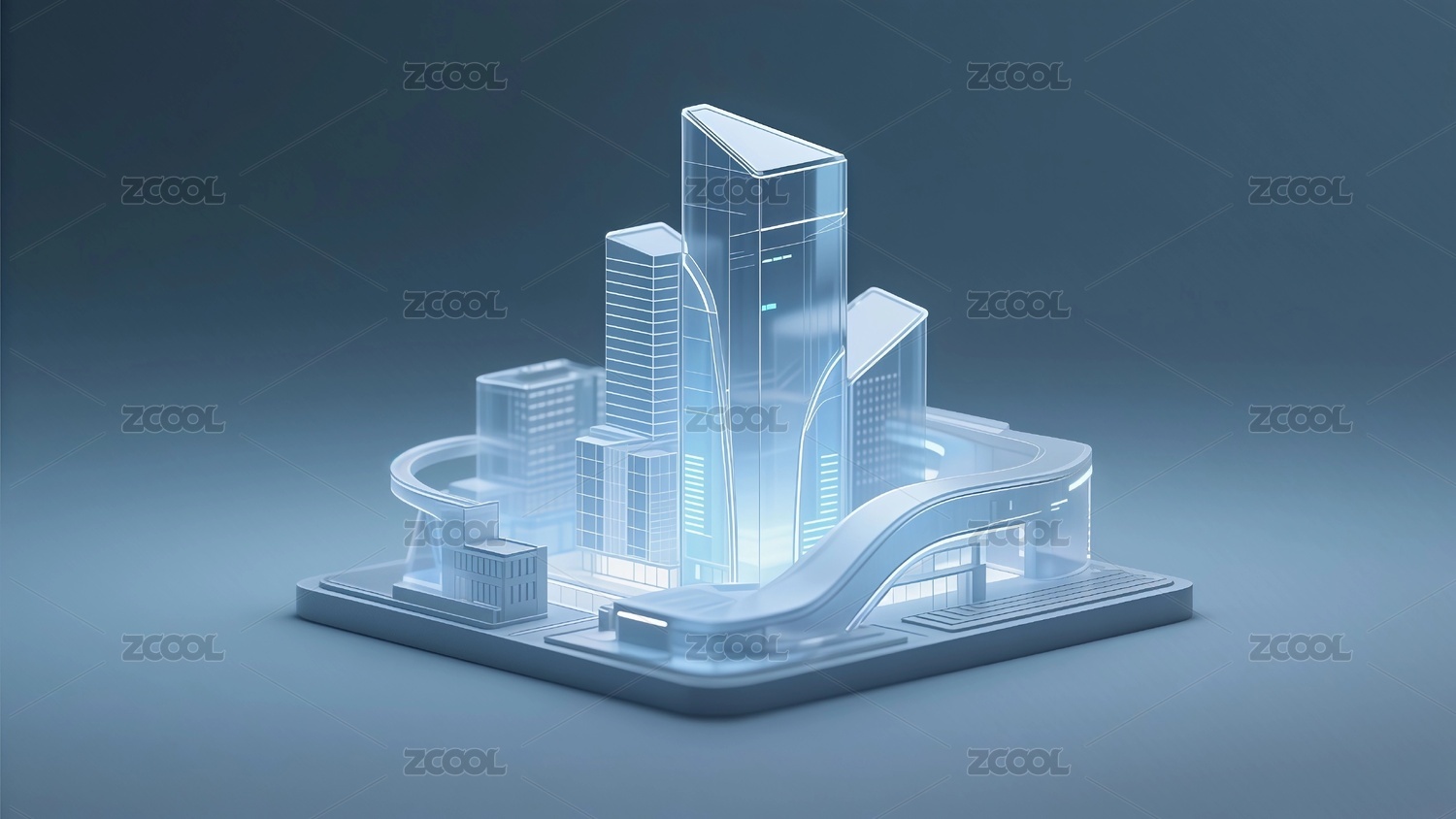 橙色商务科技未来玻璃质感图形设计城市建筑
