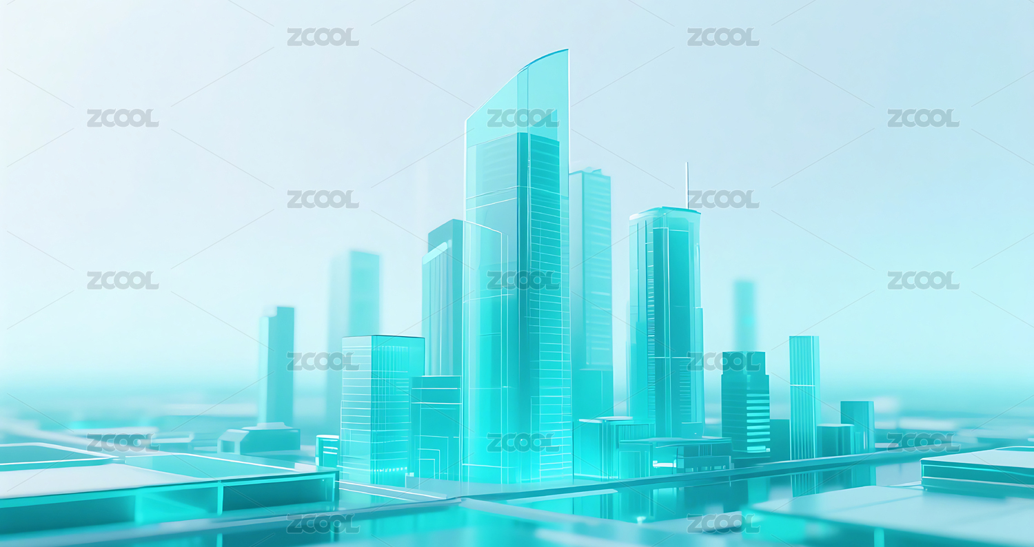 蓝绿色科技几何方块玻璃质感城市建筑