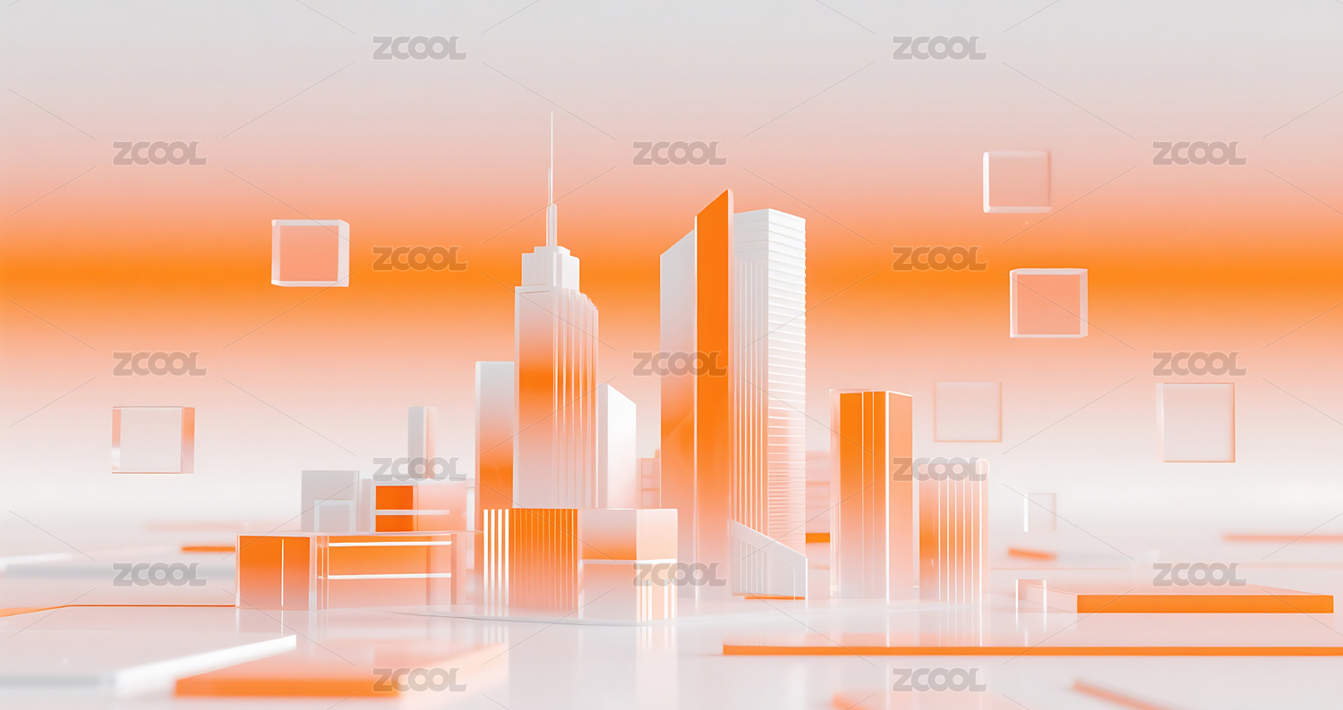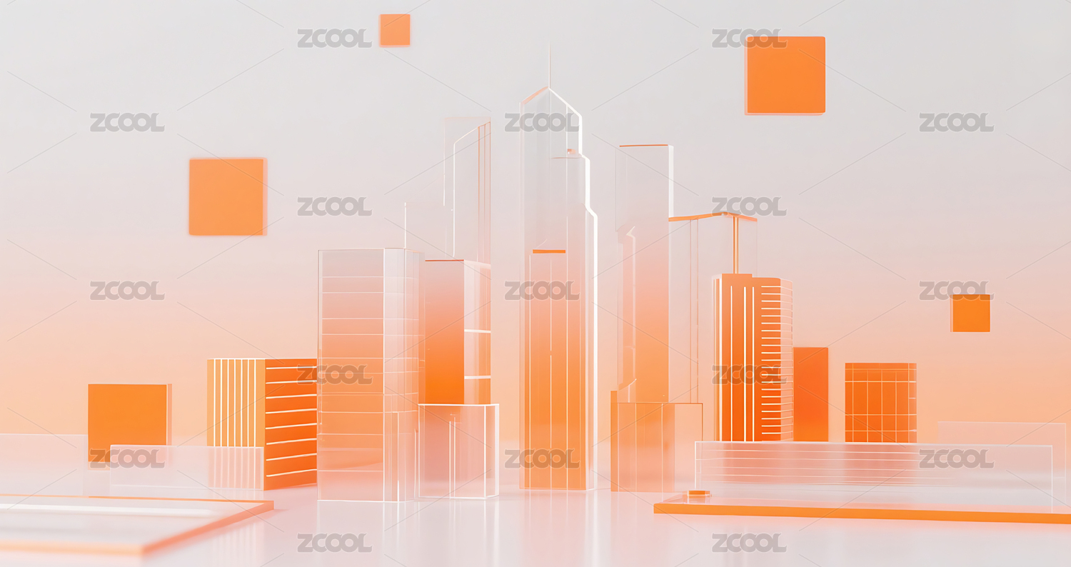 橙色商务科技未来玻璃质感图形设计城市建筑