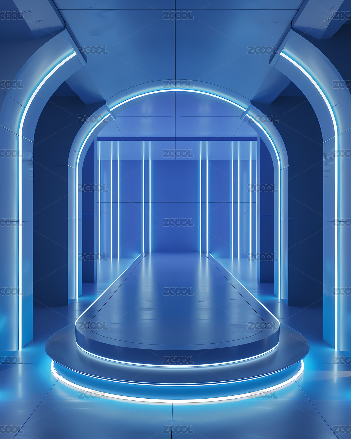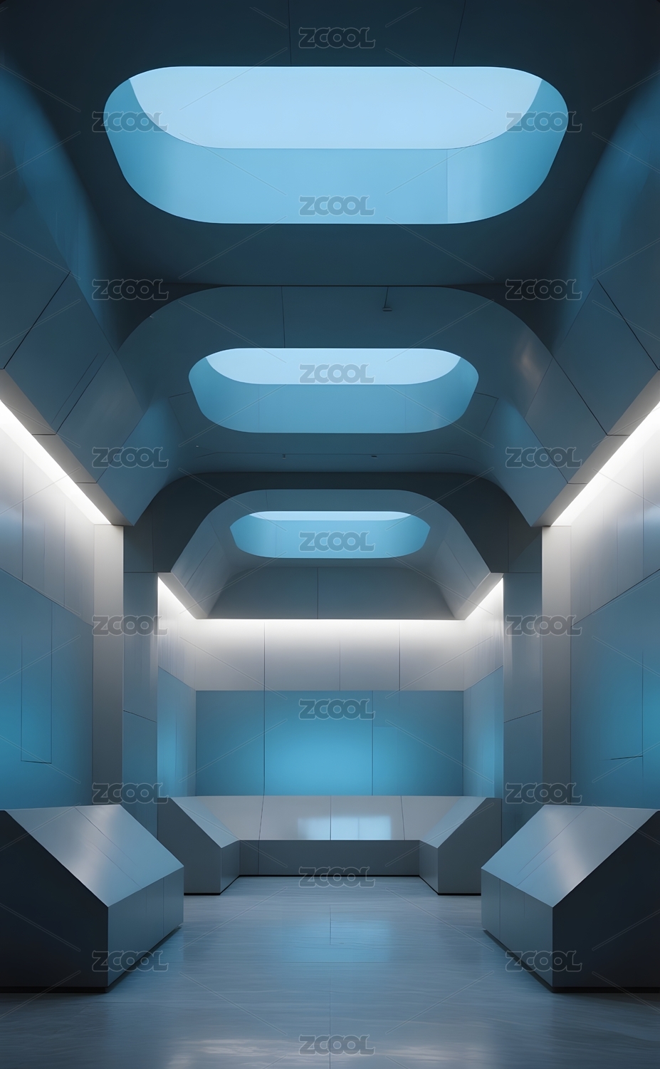 灯光,蓝色,科技,未来,反射,墙壁,数字,现代,几何,结构