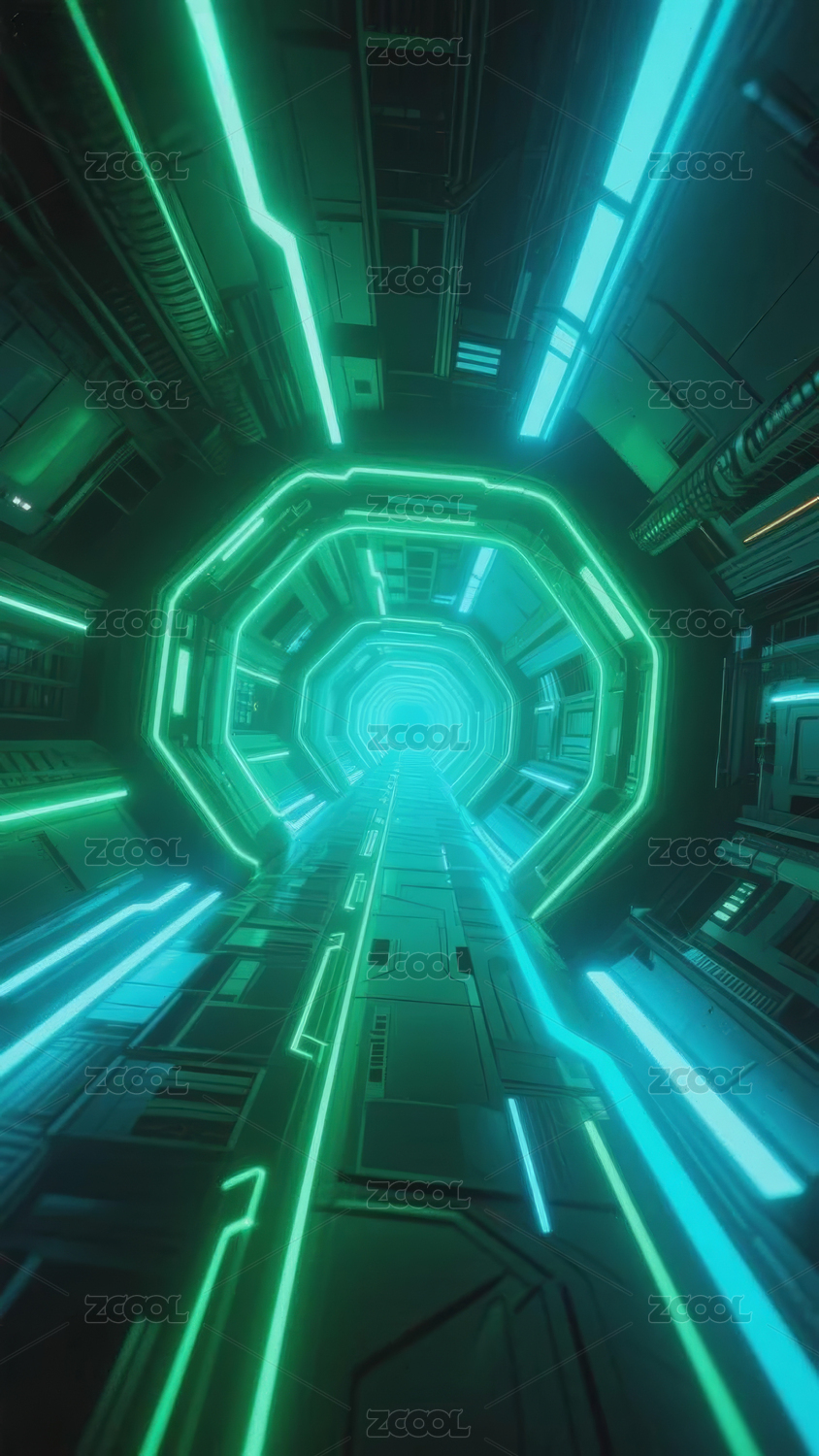 有发光线条条形灯组成的几何形状科技感通道隧道背景素材