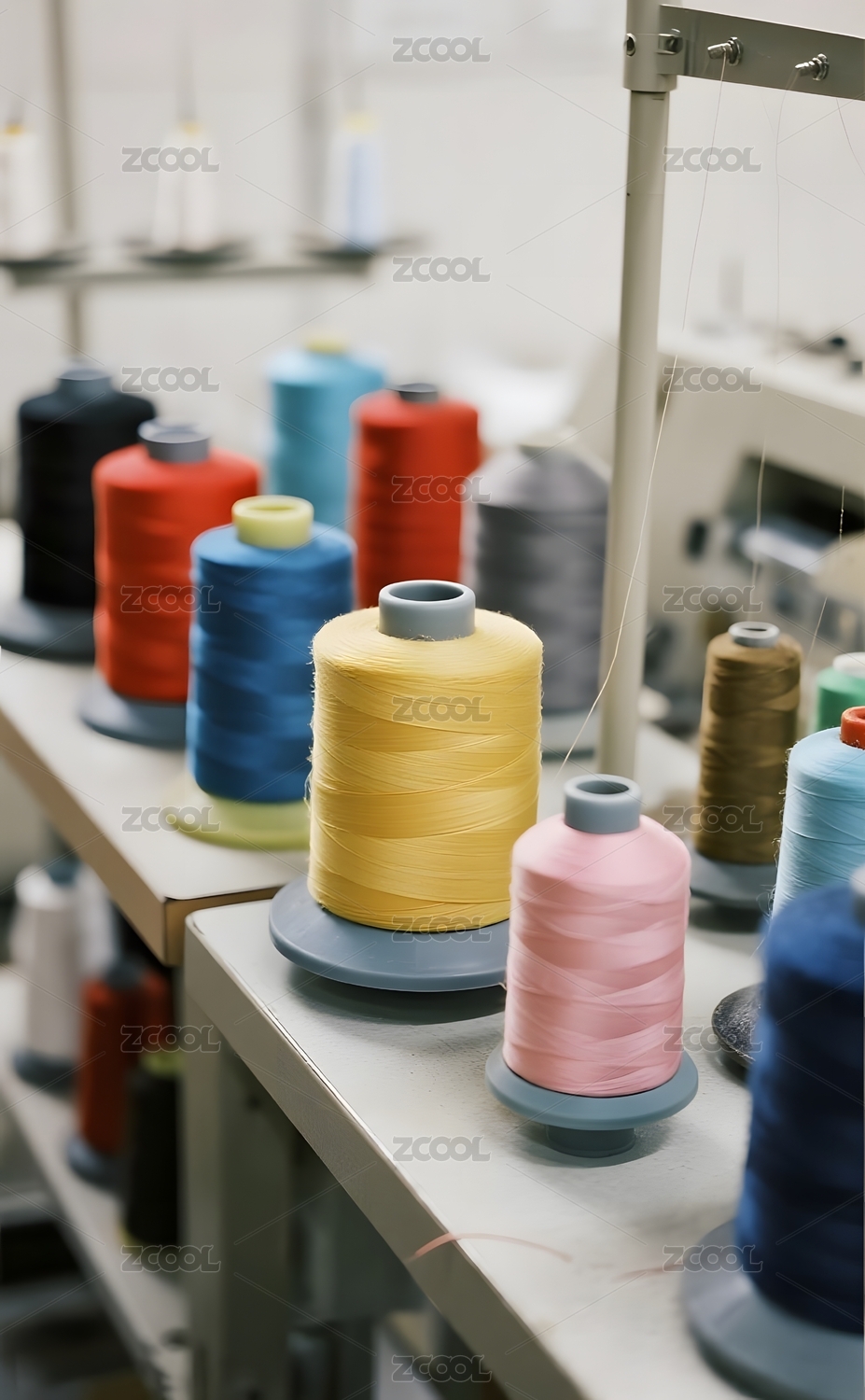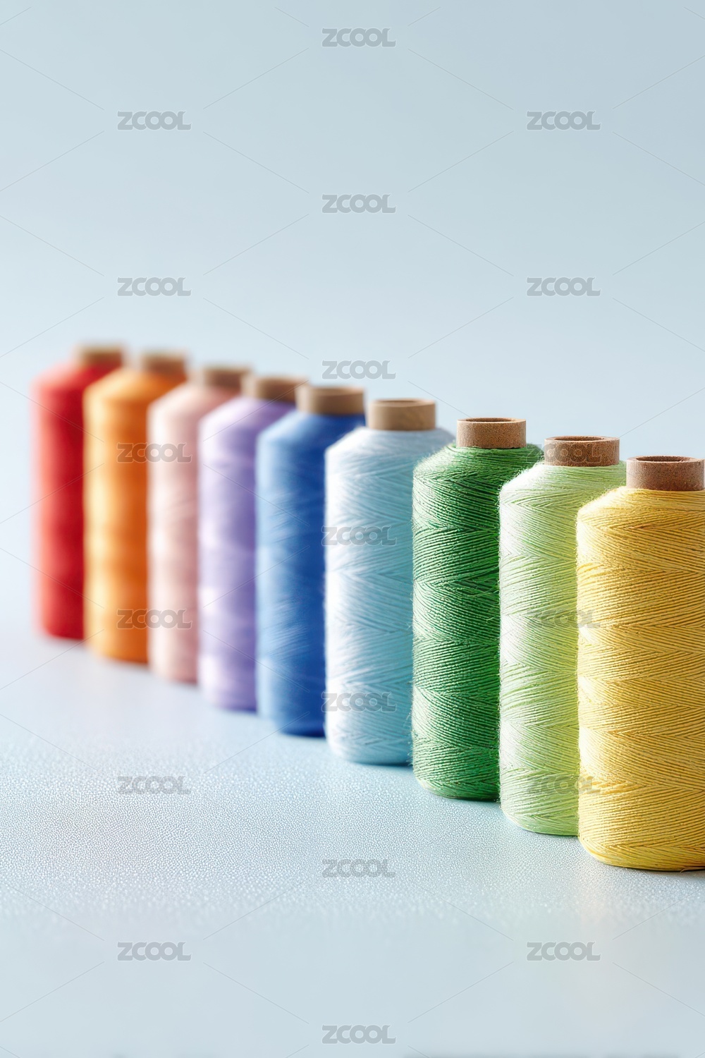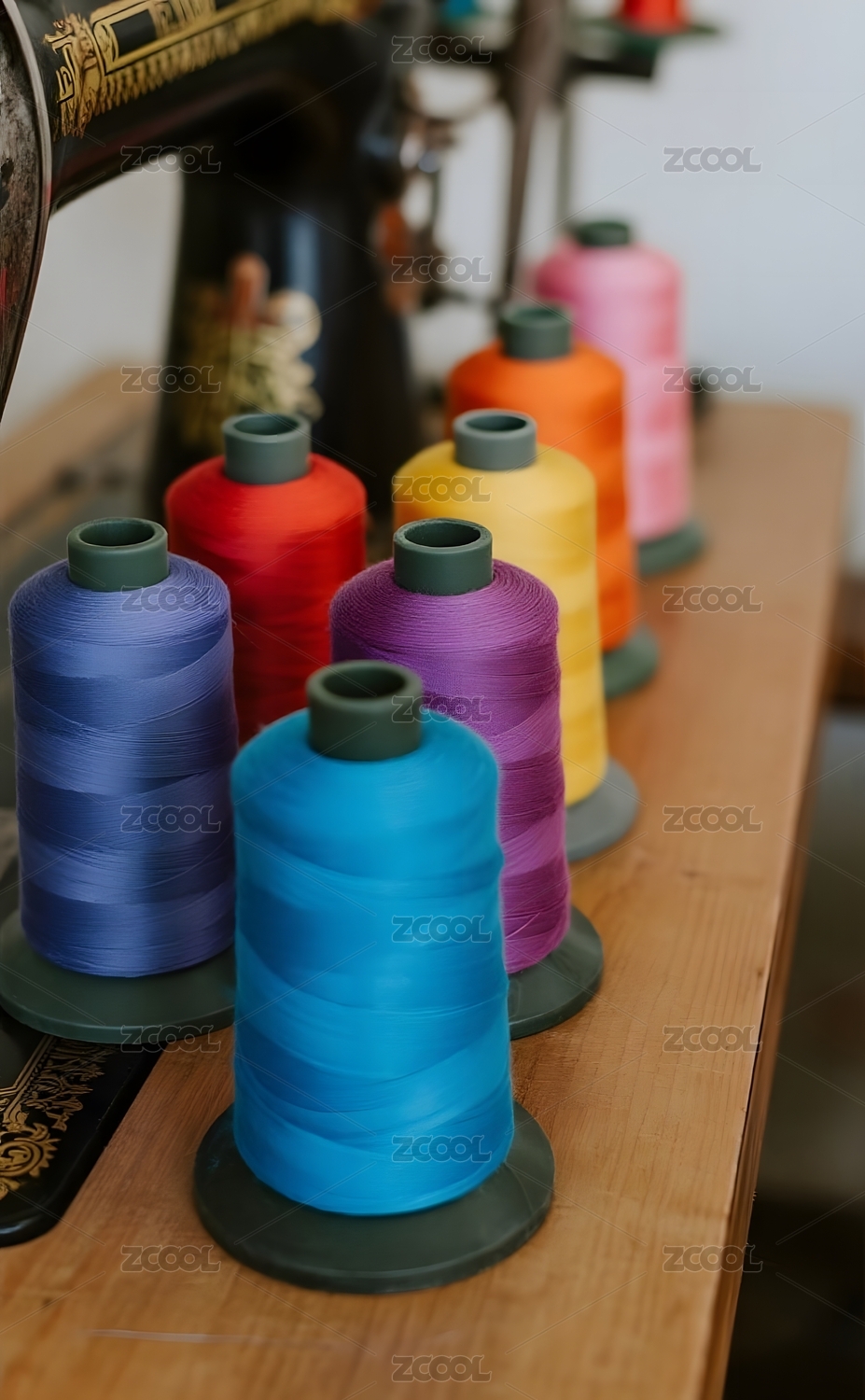色彩斑斓的缝纫线卷在灯光下闪耀