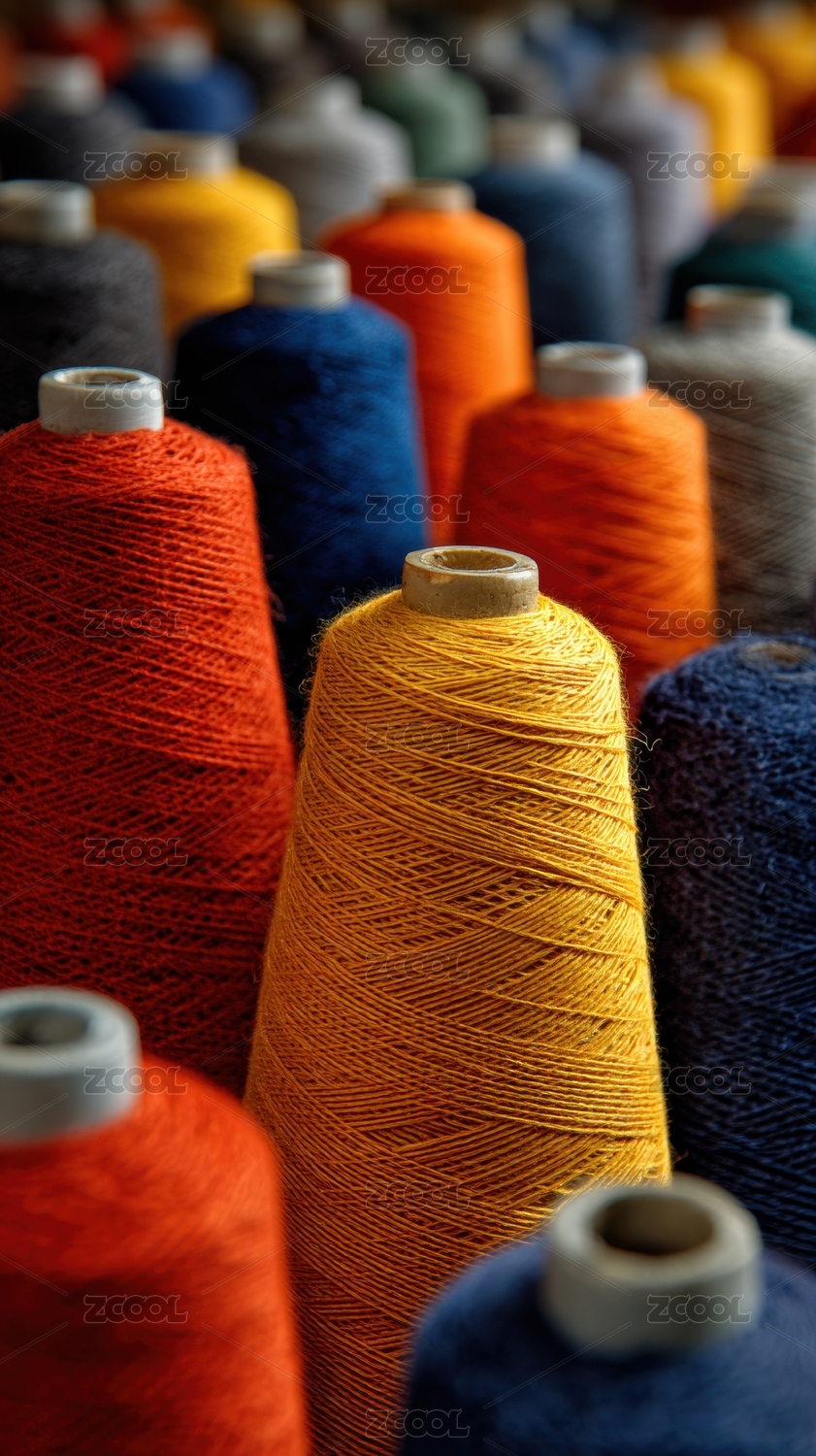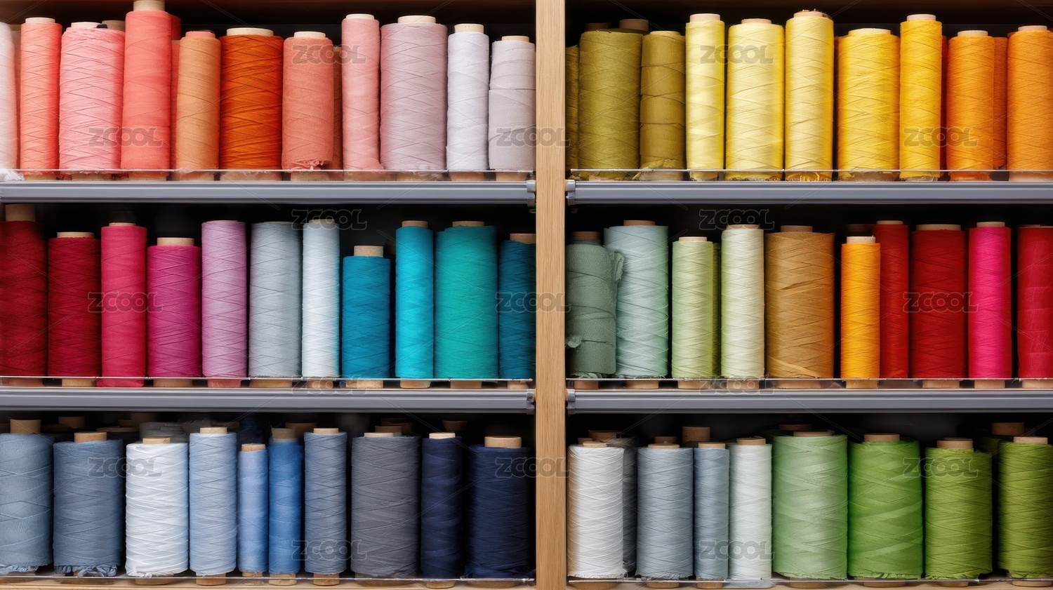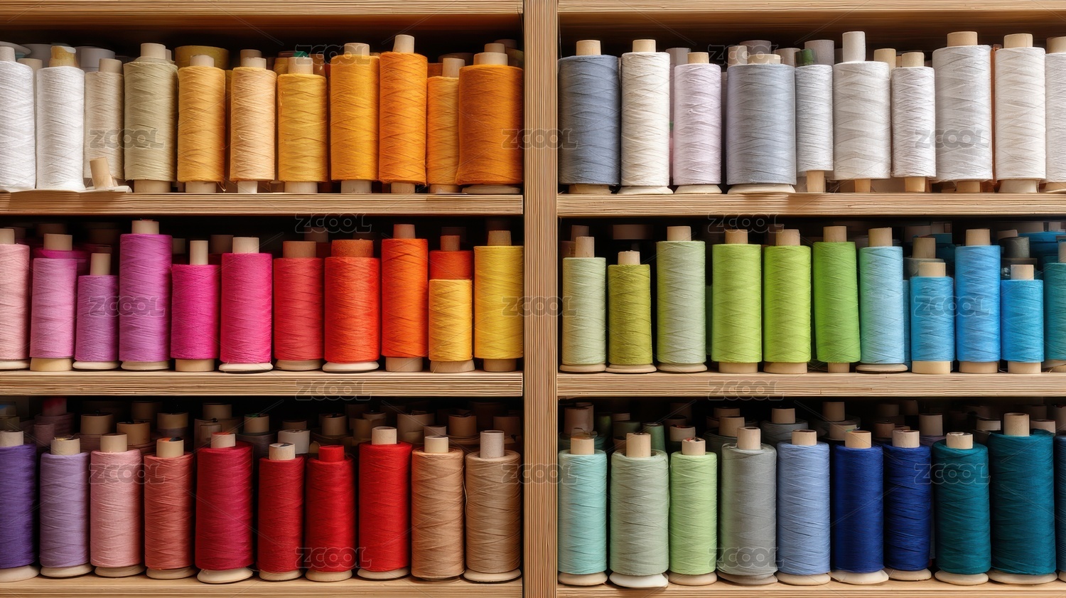 色彩斑斓的缝纫线卷在灯光下闪耀