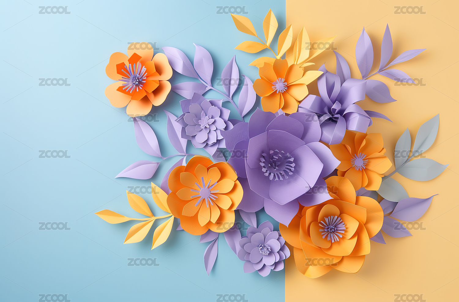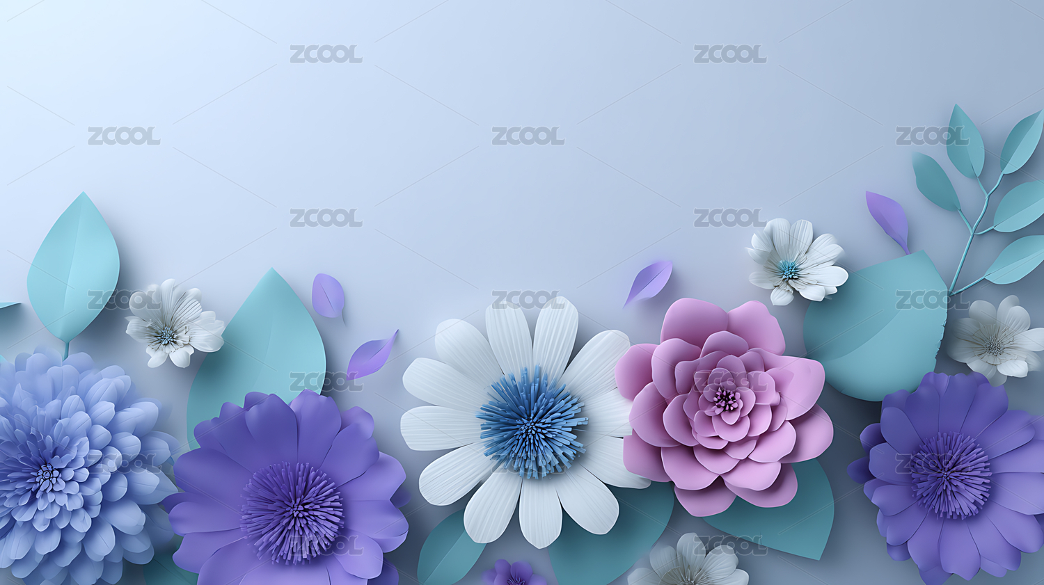 3D紫色背景剪纸花束插画