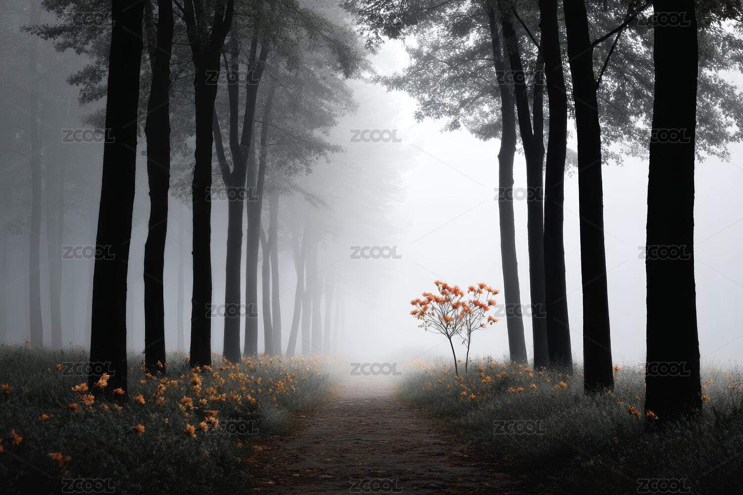 自然,户外,光影,神秘,幽静,树林,小道,朦胧,氛围,雾气