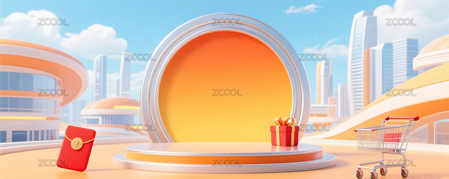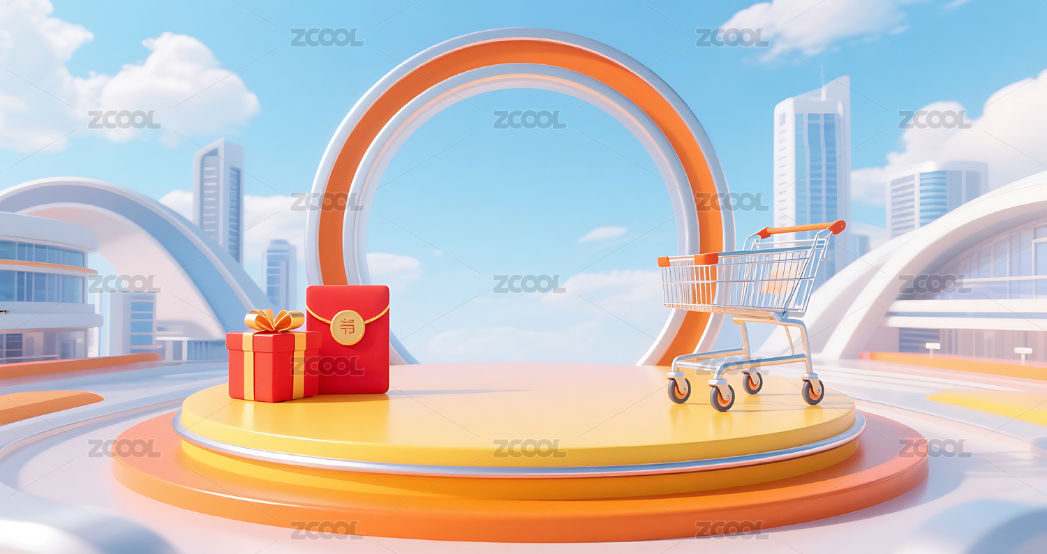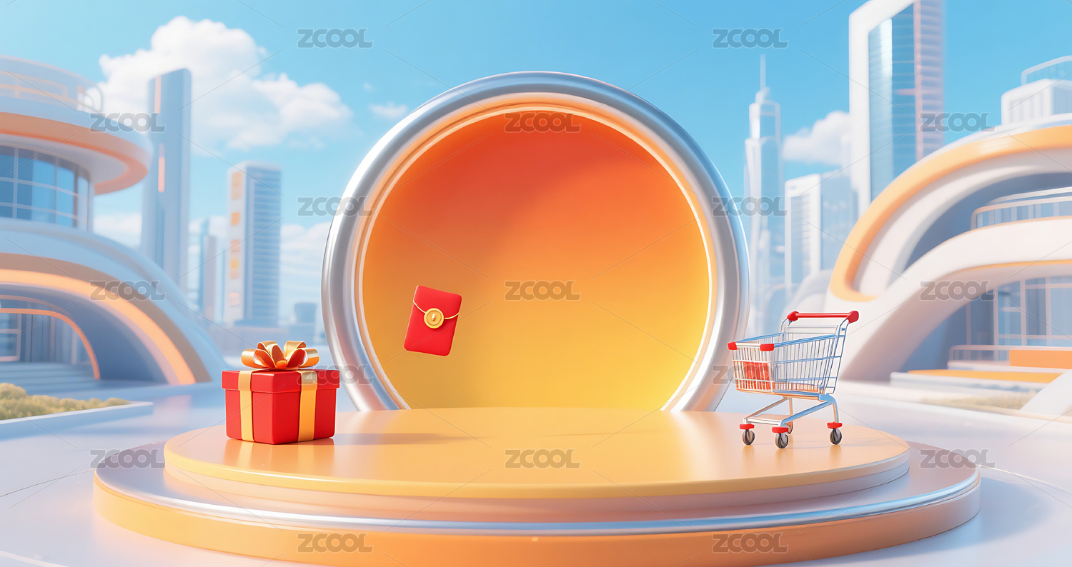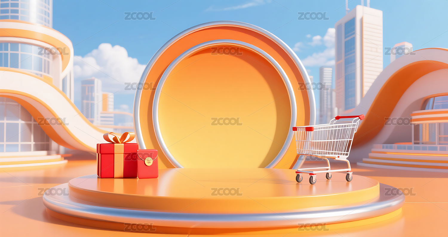 3D,彩色,渐变,立体,购物车,礼物,礼品,礼盒,送礼,背景