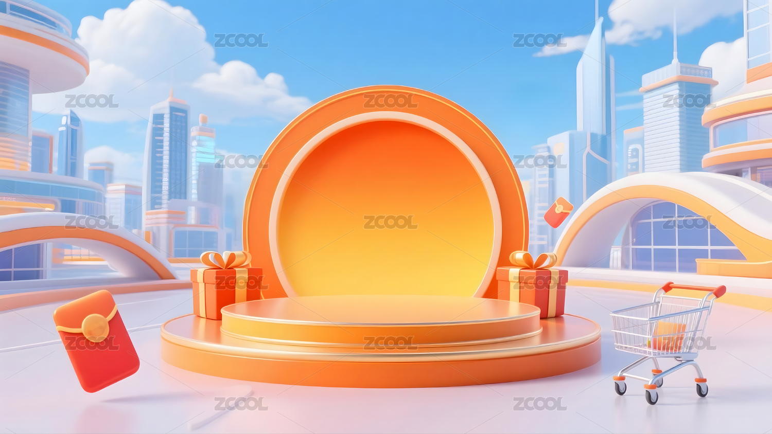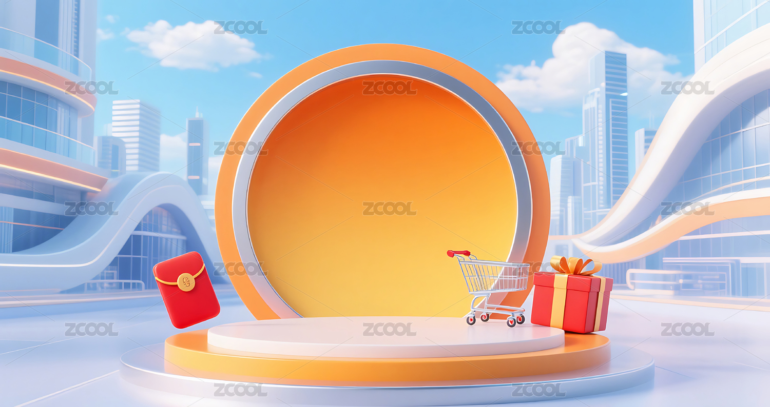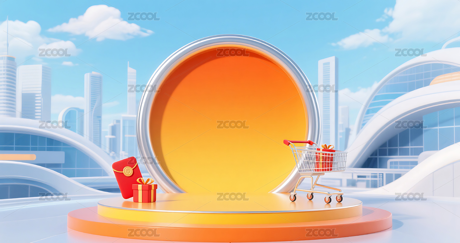 3D,彩色,渐变,立体,购物车,礼物,礼品,礼盒,送礼,背景