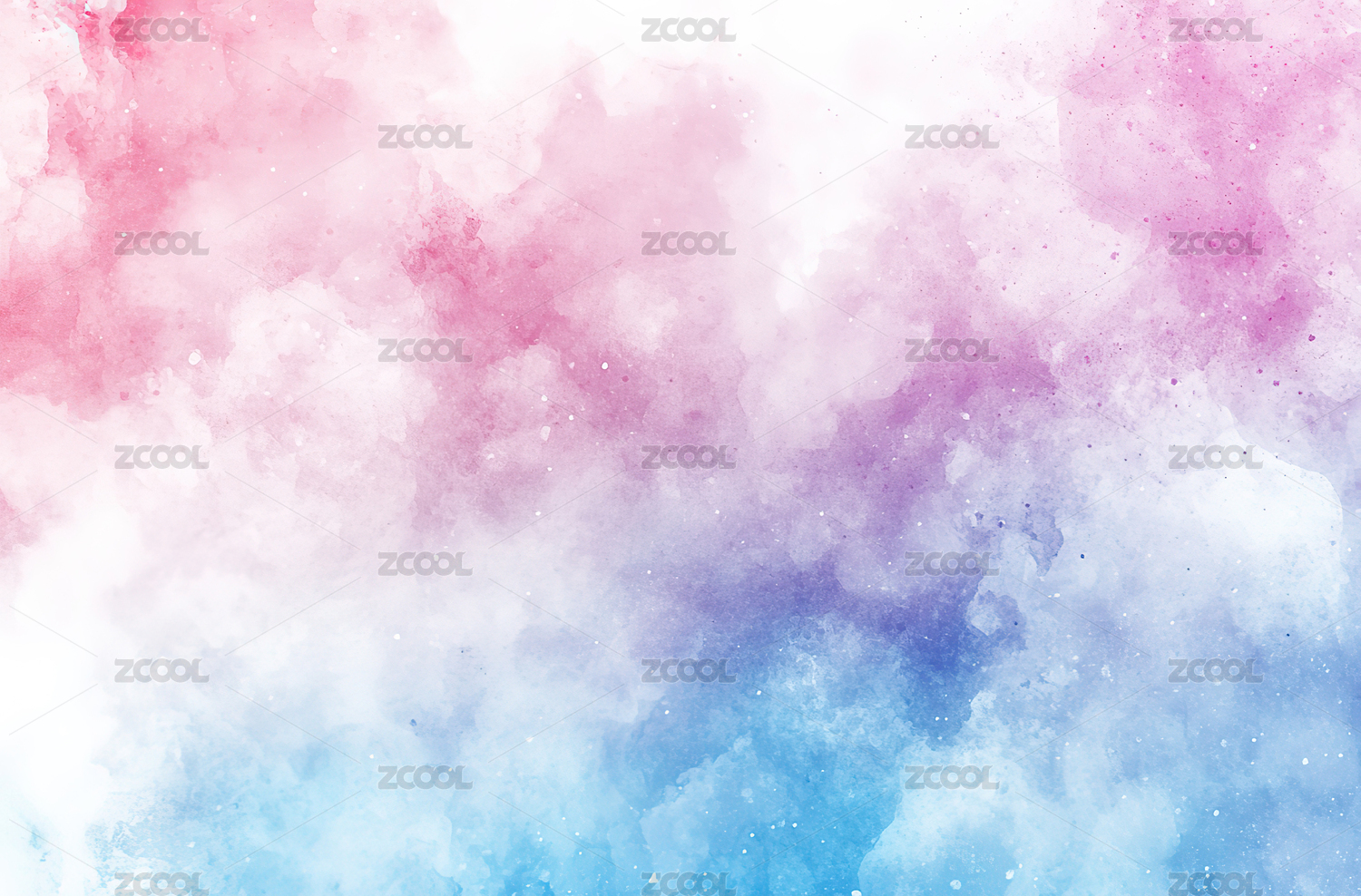 红蓝色彩晕染成云雾状的抽象水彩艺术背景
