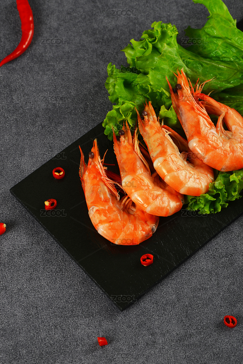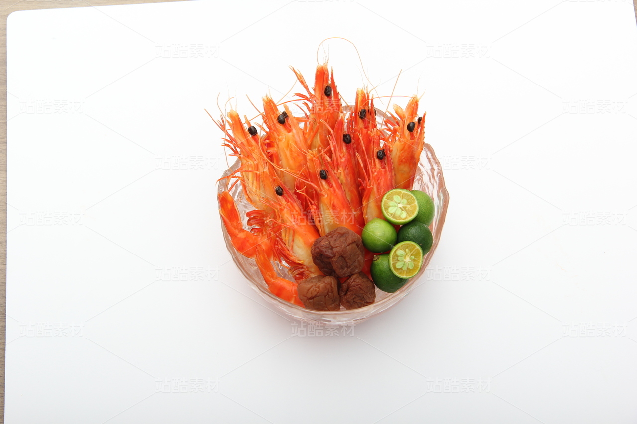 一盘熟虾冷泡无保水剂不保水黑虎虾白底图