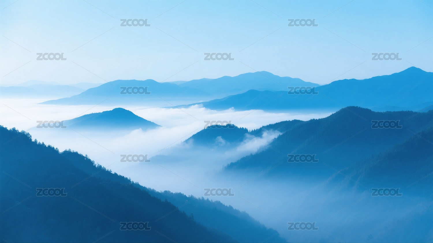 蓝色中国风云雾意境山脉