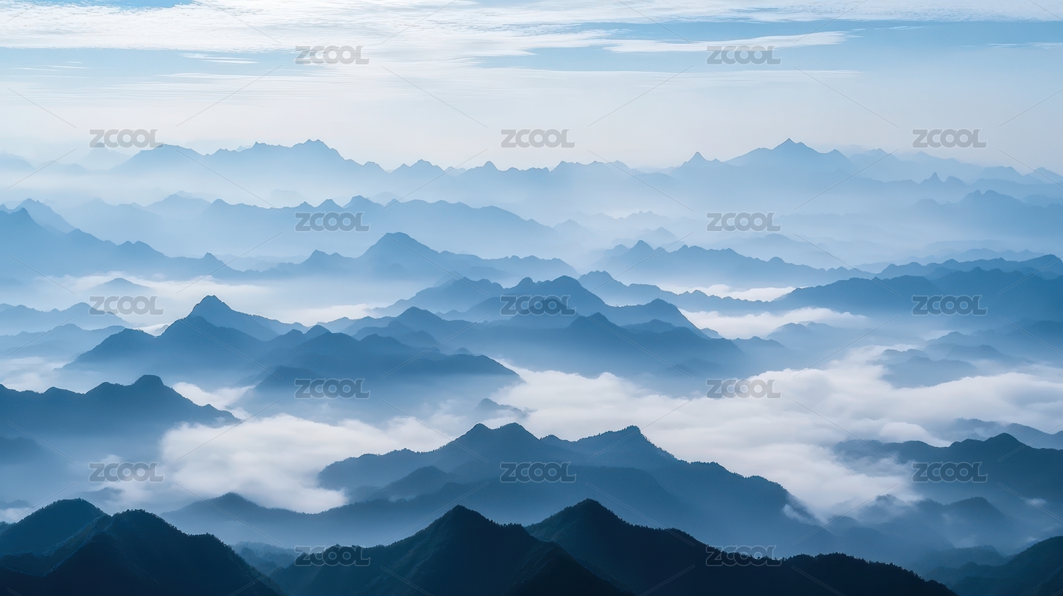 云雾缭绕的蓝色山脉