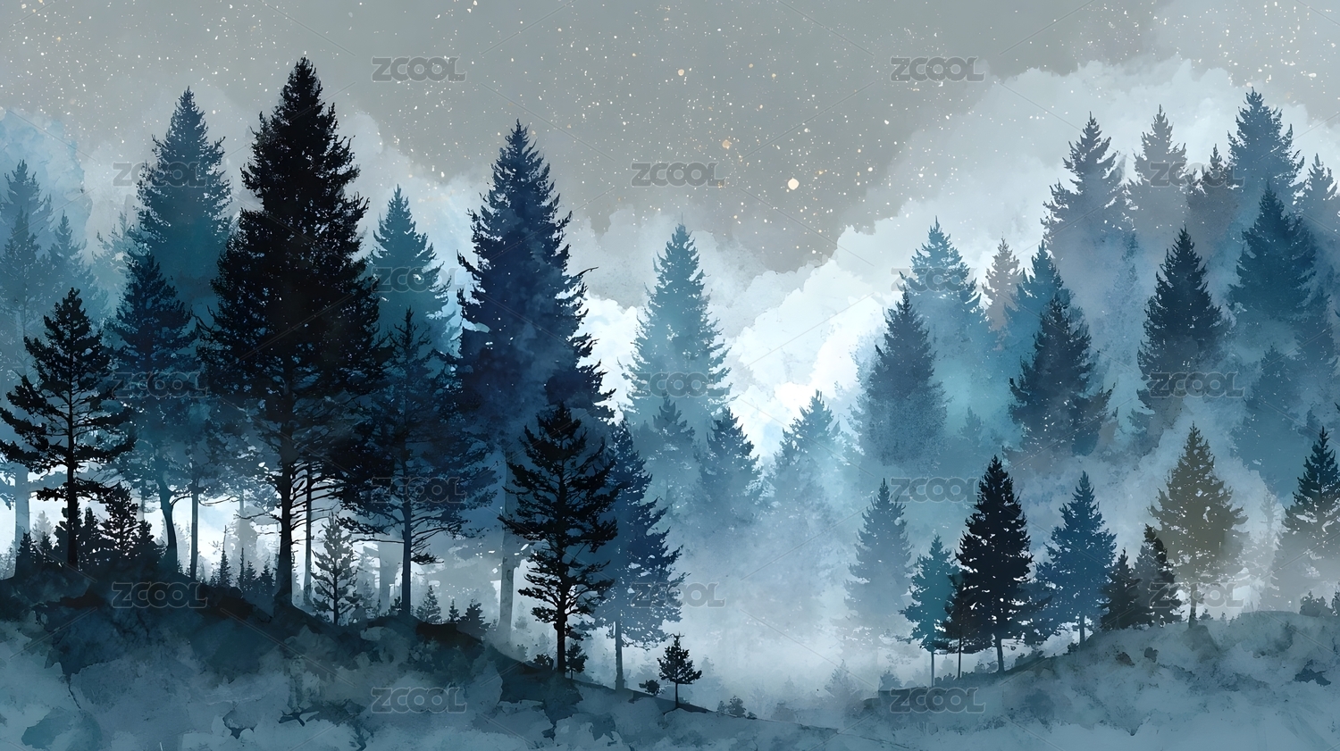 圣诞新年节日背景创意梦幻插画商业海报壁纸
