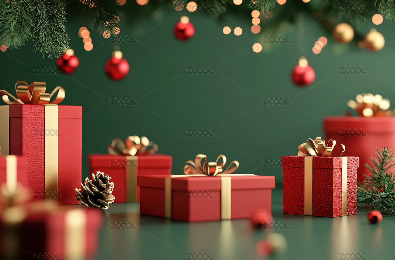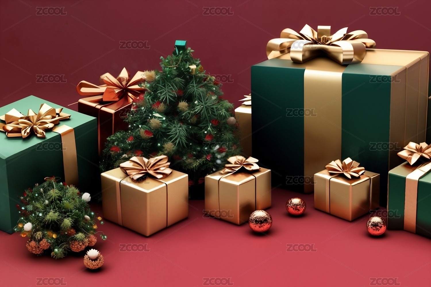 红色,背景,金色,星星,节日,礼物,盒子,深棕色,布料,松枝
