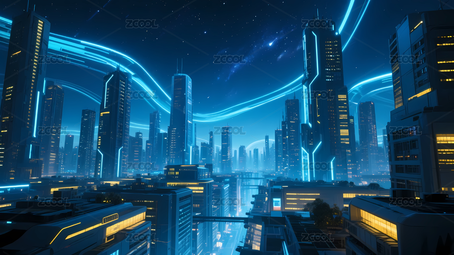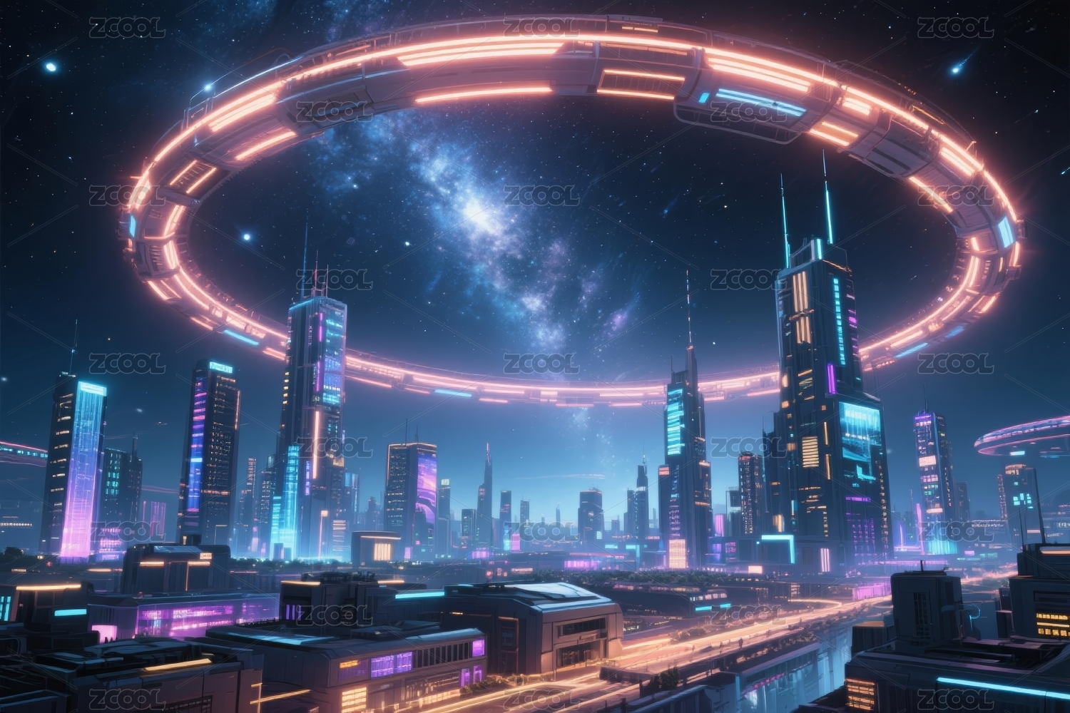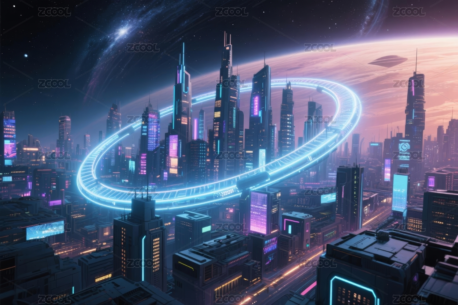 背景,蓝色,橙色,天空,光环,现代,城市,夕阳,景观,科幻