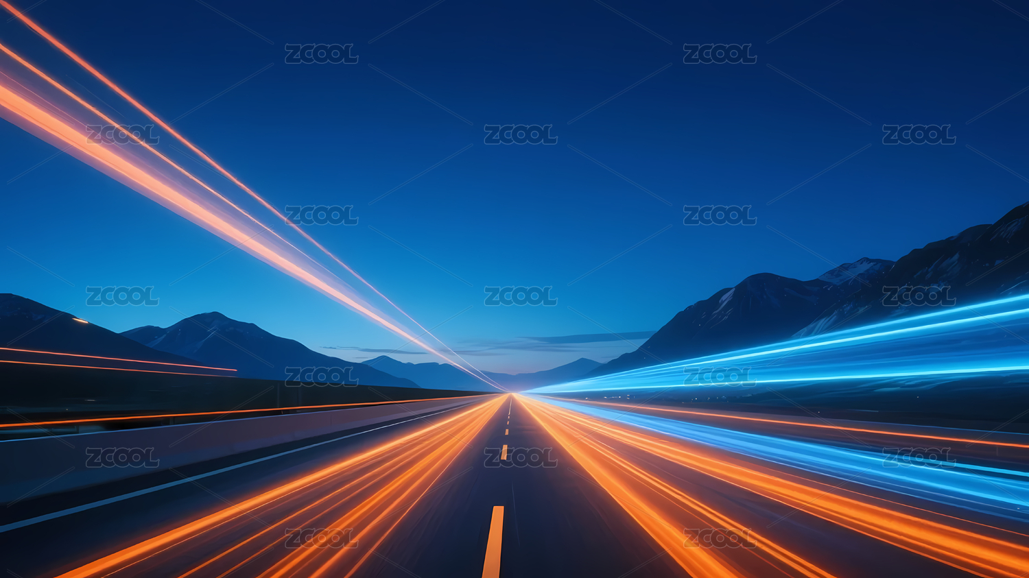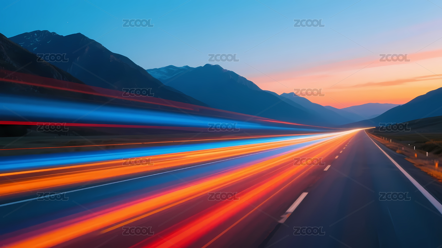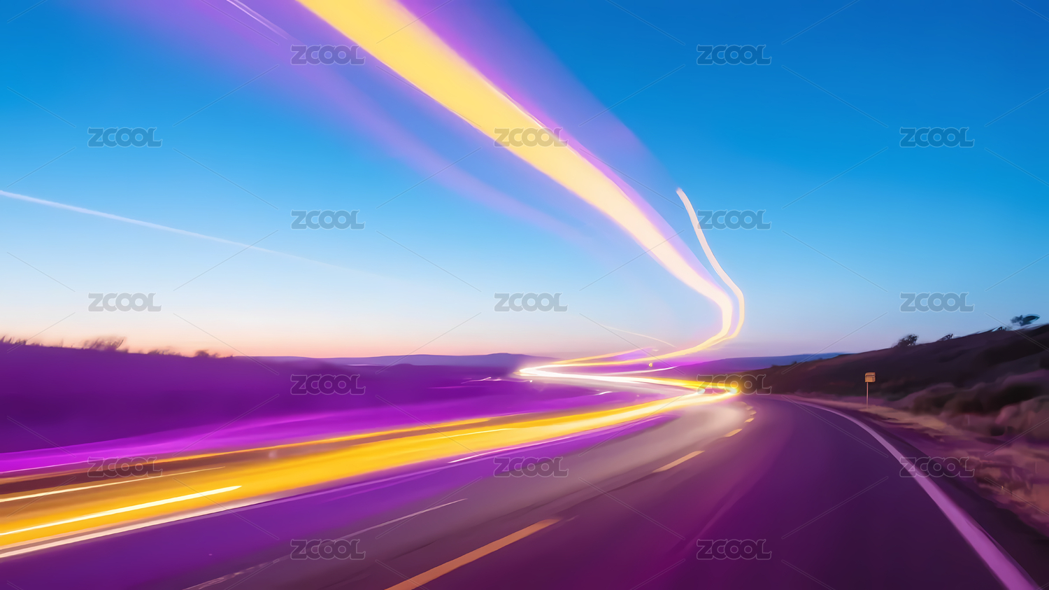公路彩色光带映衬渐变天