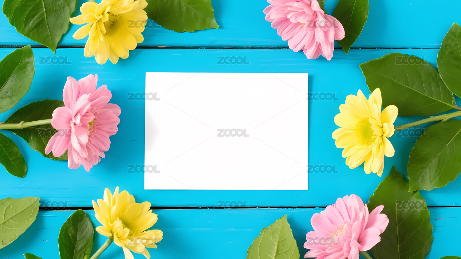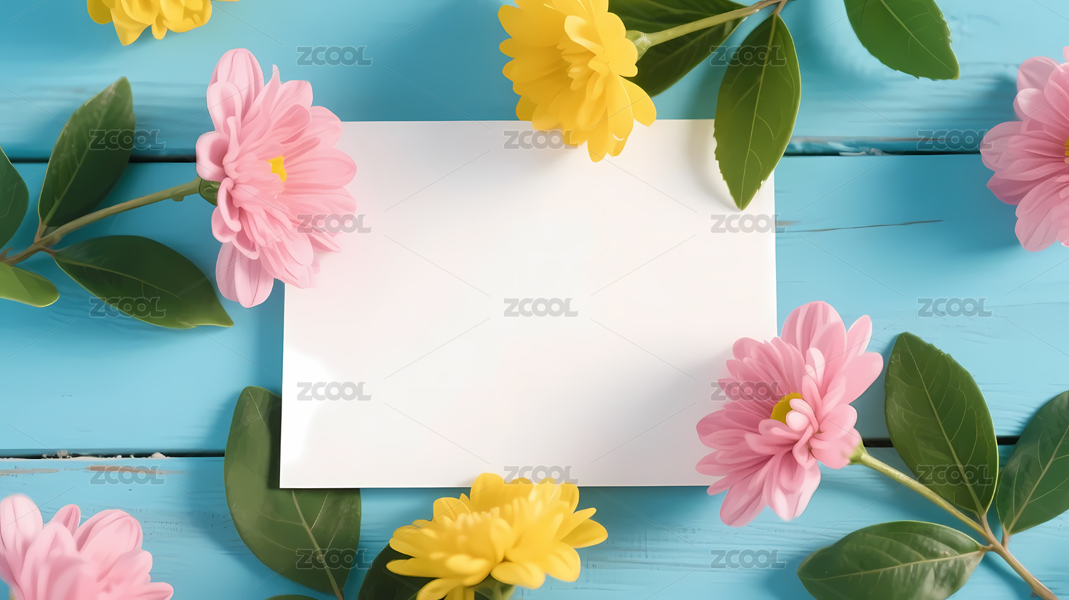 白色卡片花叶蓝色桌面