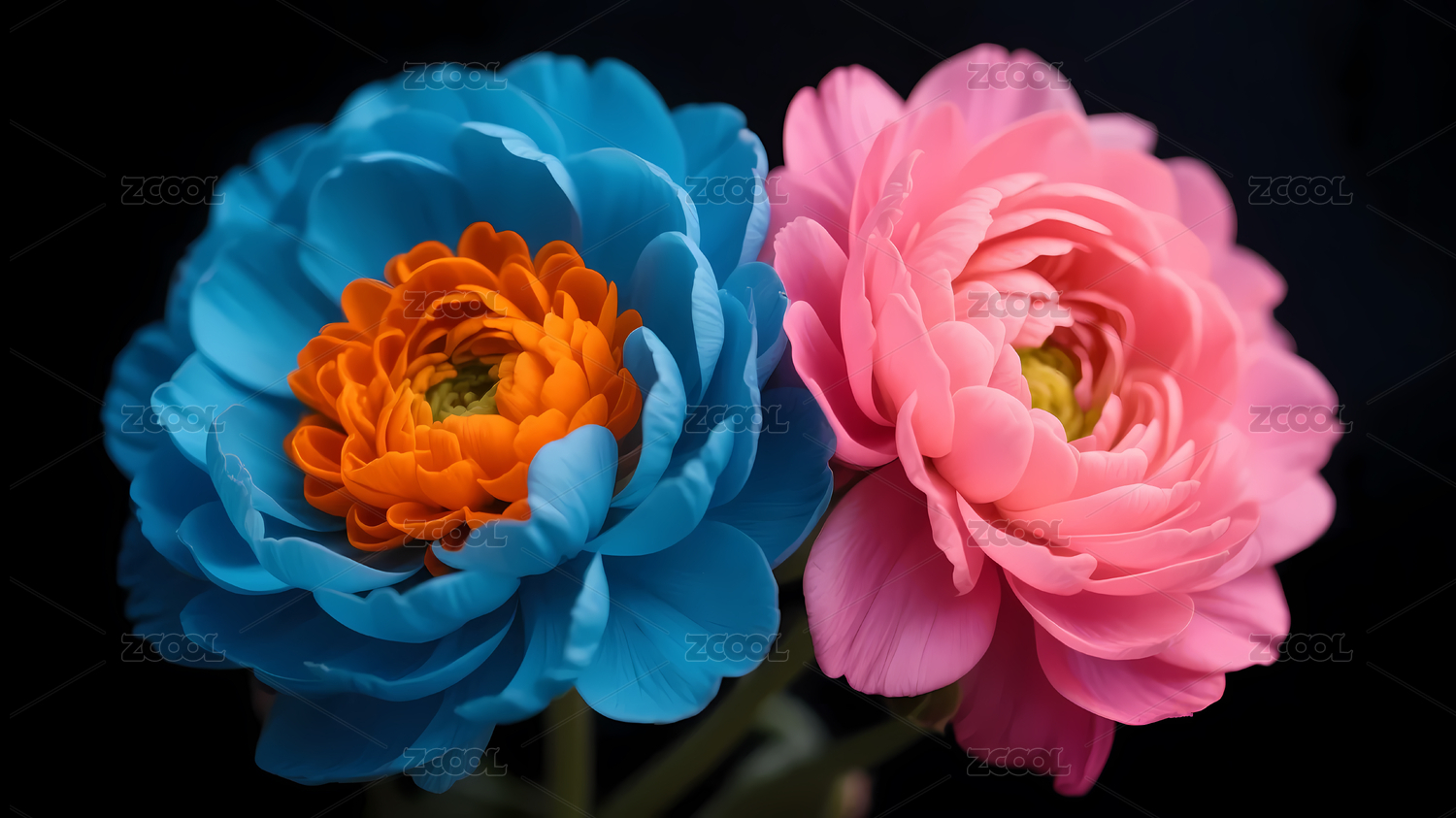 背景,蓝色,花朵,粉色,黄色,自然,植物,盛开,深绿,生机