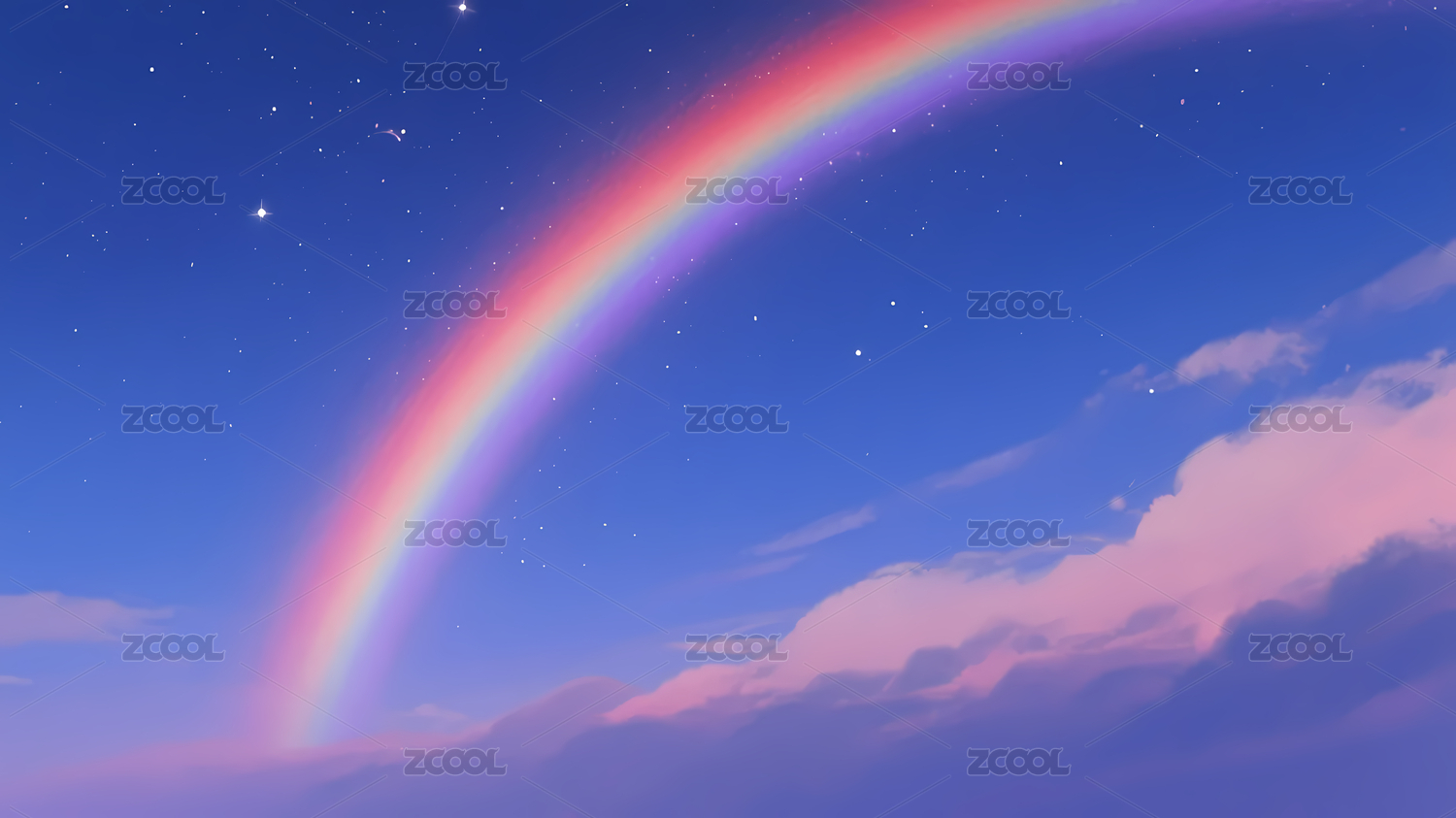 唯美粉紫色彩虹梦幻云层天空背景插画