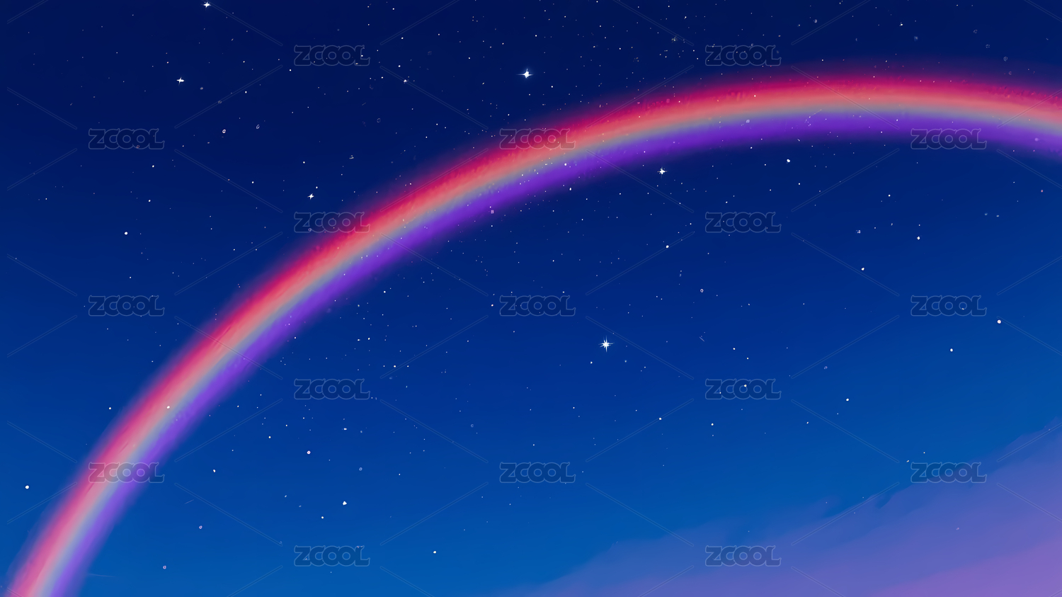 橙色,蓝色,夜空,紫色,黄色,星星,彩虹,绿色,红色,白云
