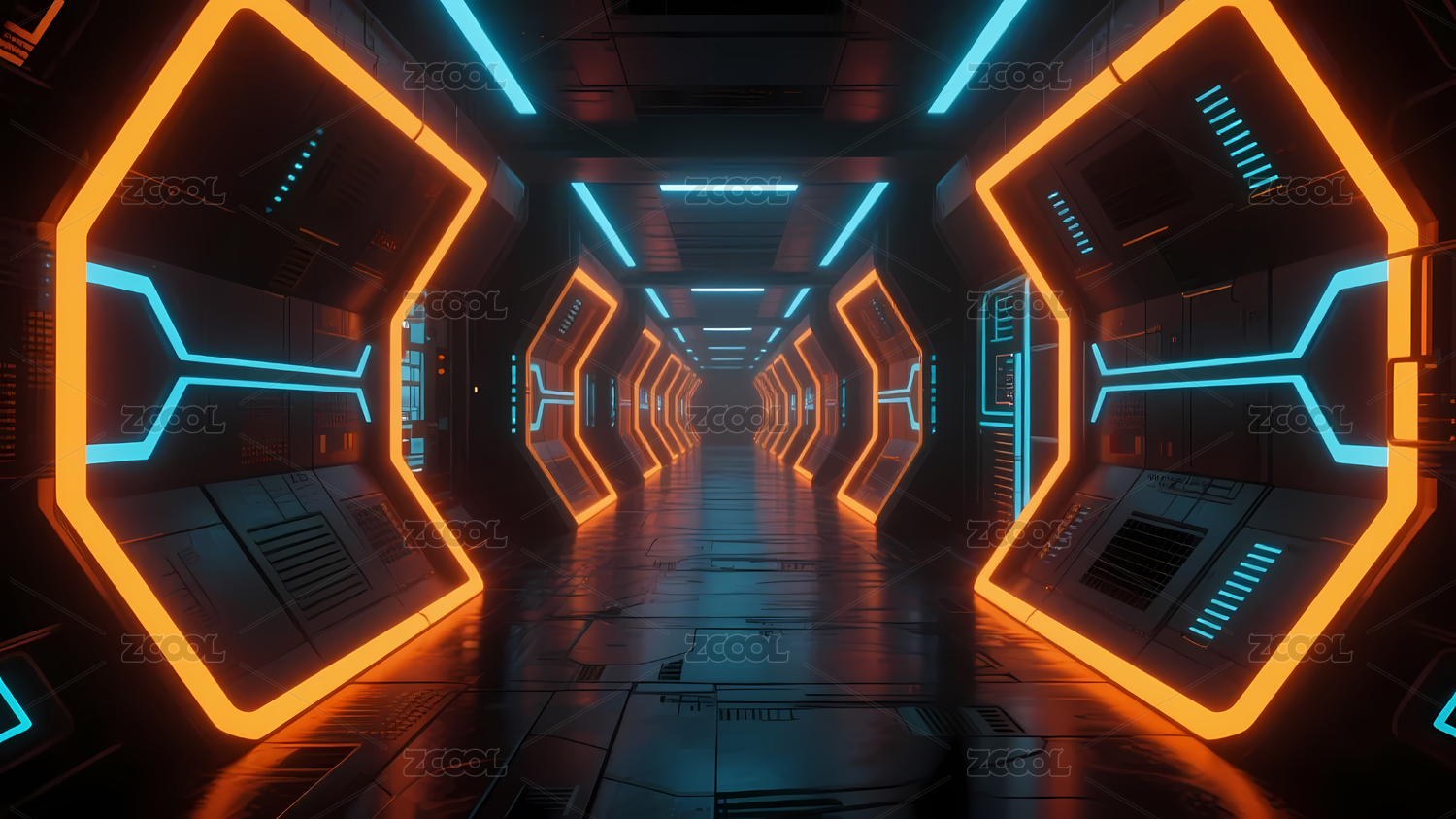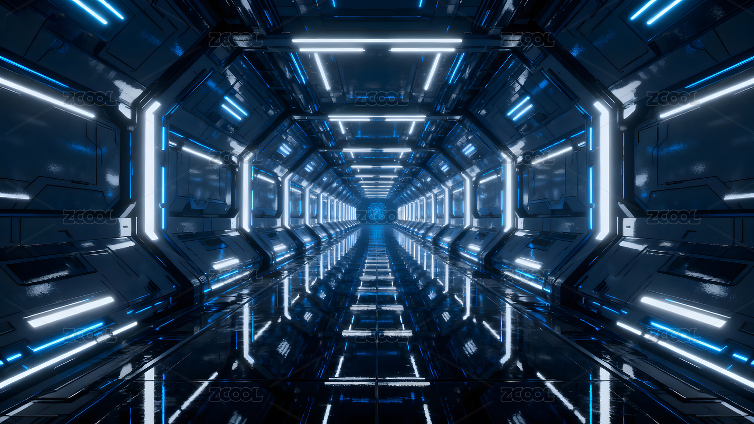 背景,蓝色,发光,深色,走廊,科幻,金属,地面,八边形,墙壁