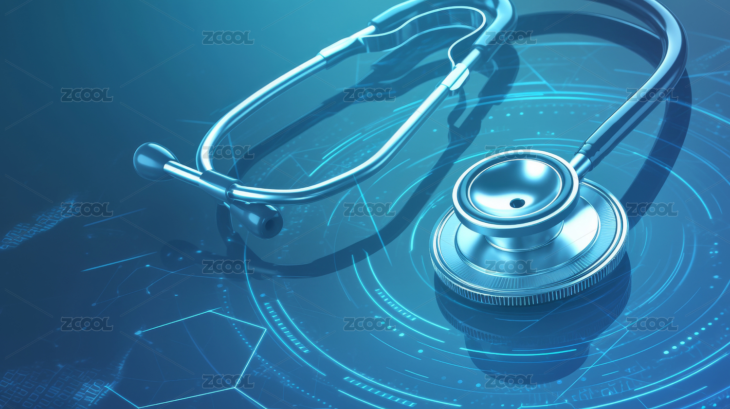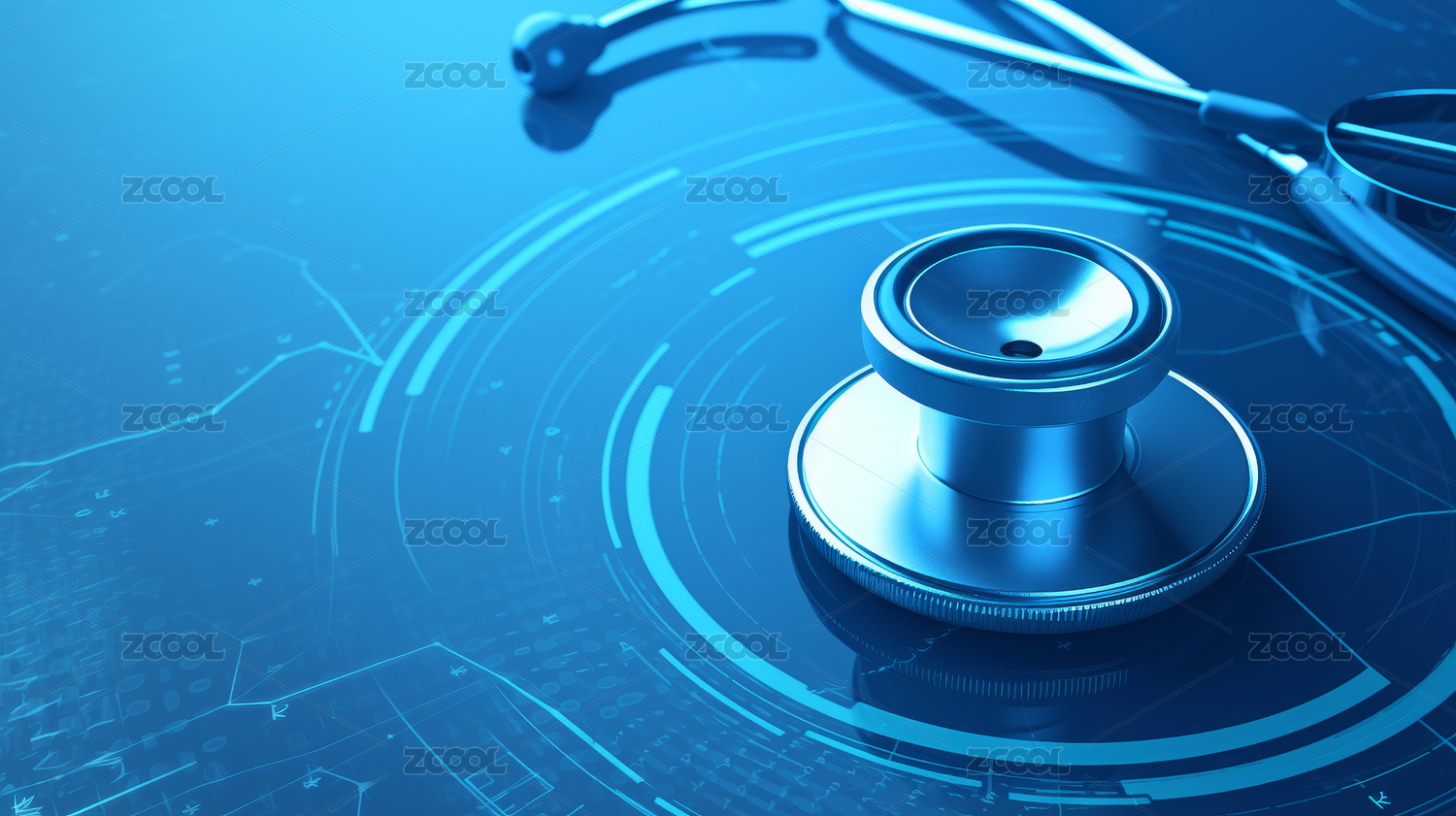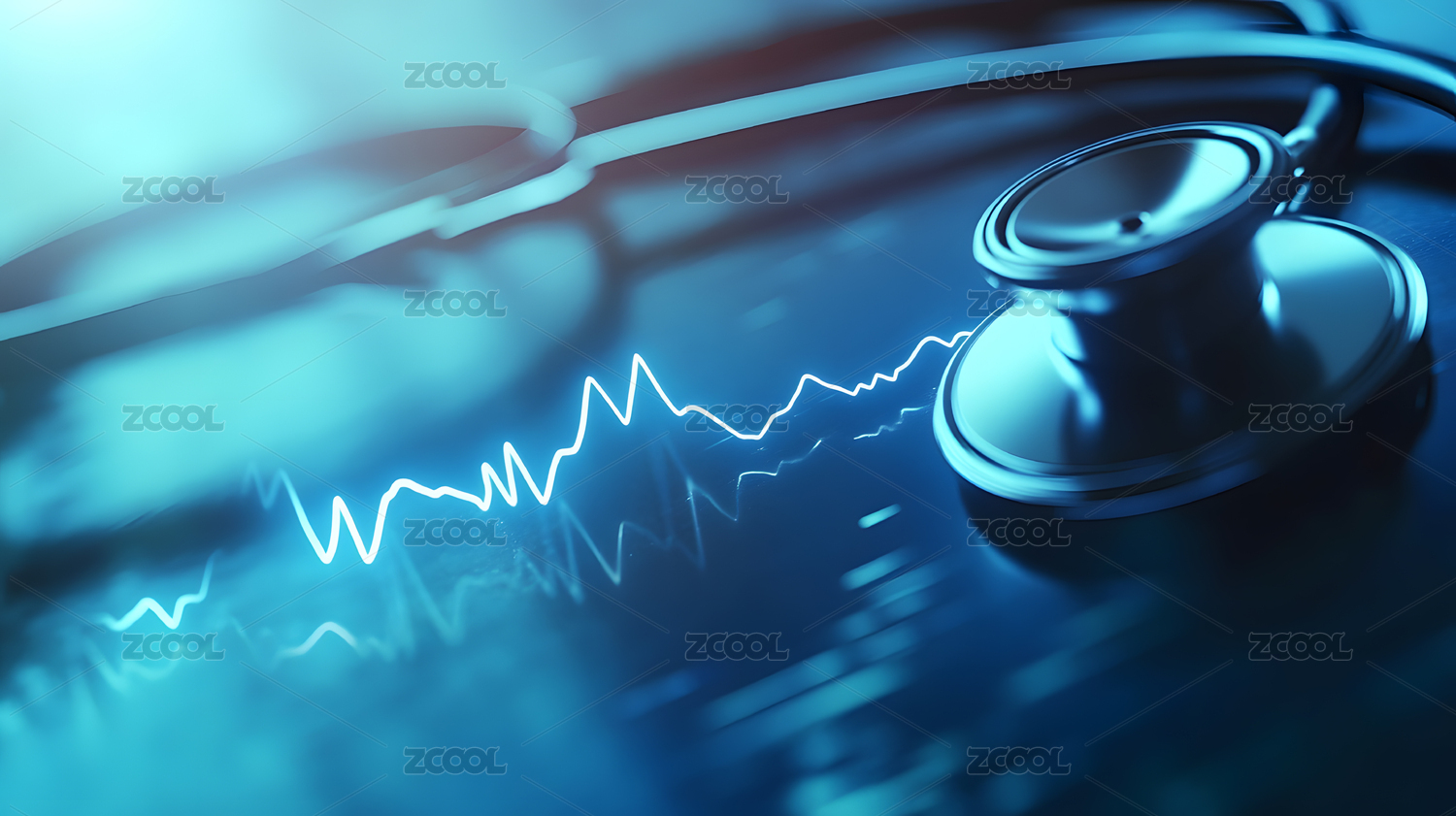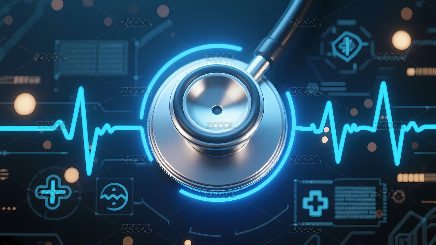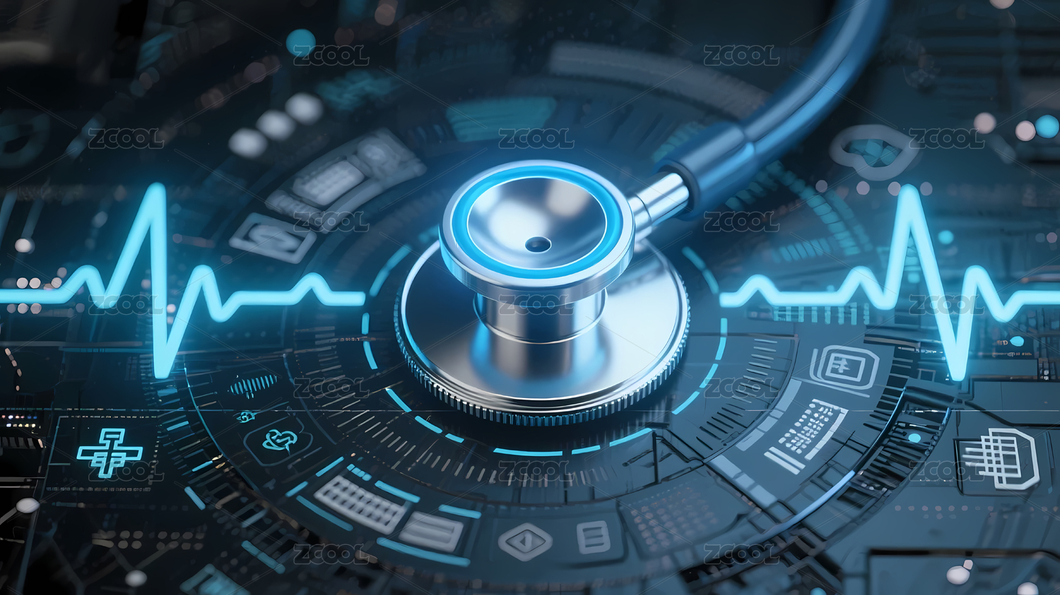 背景,蓝色,黑色,银色,科技,符号,听诊器,界面,波形,心电图