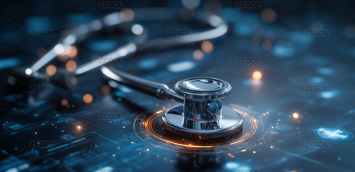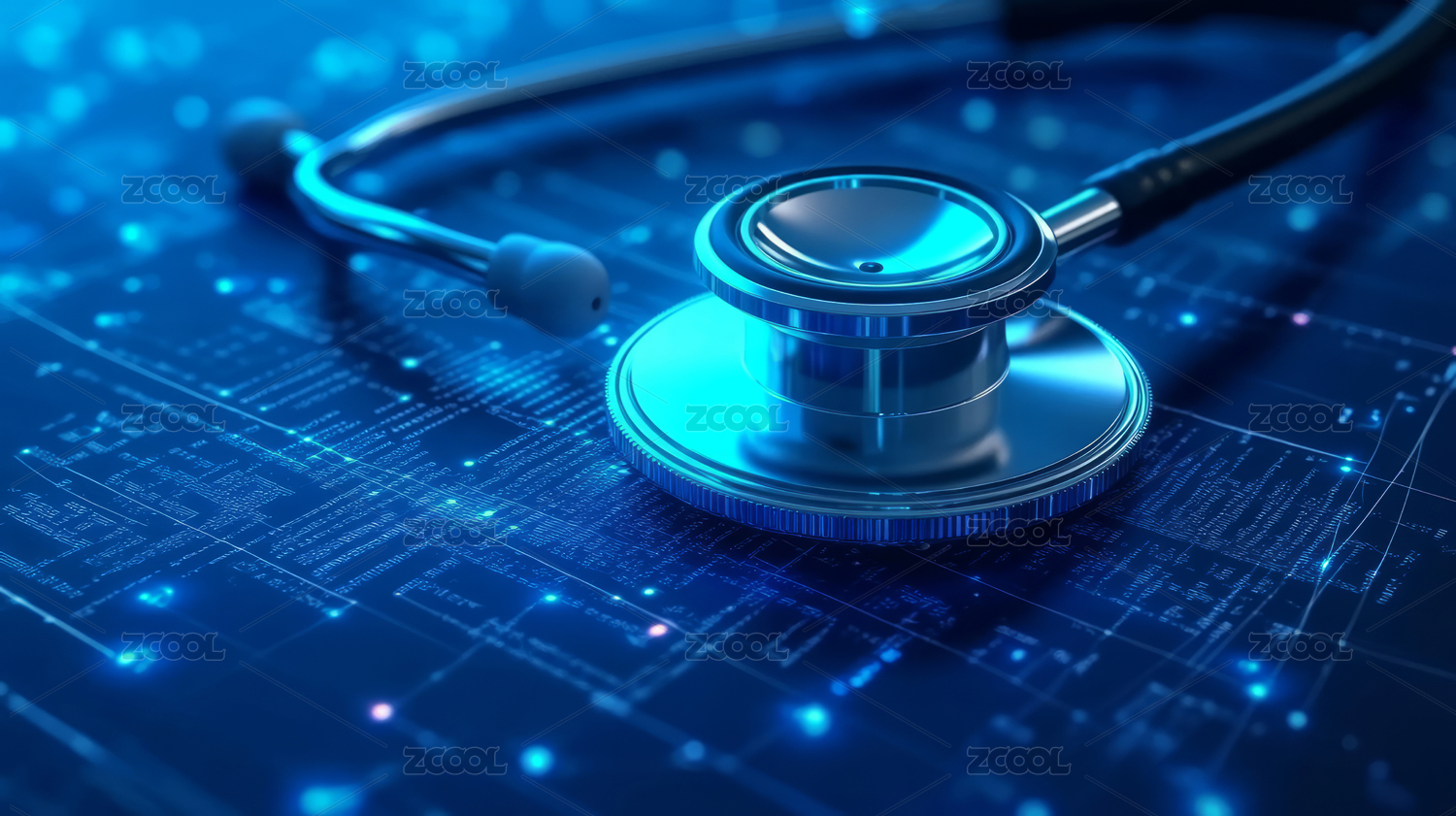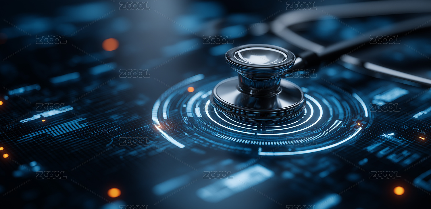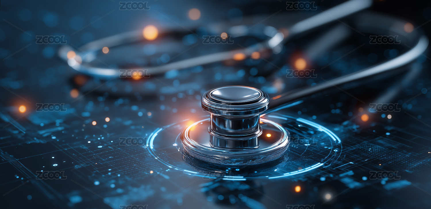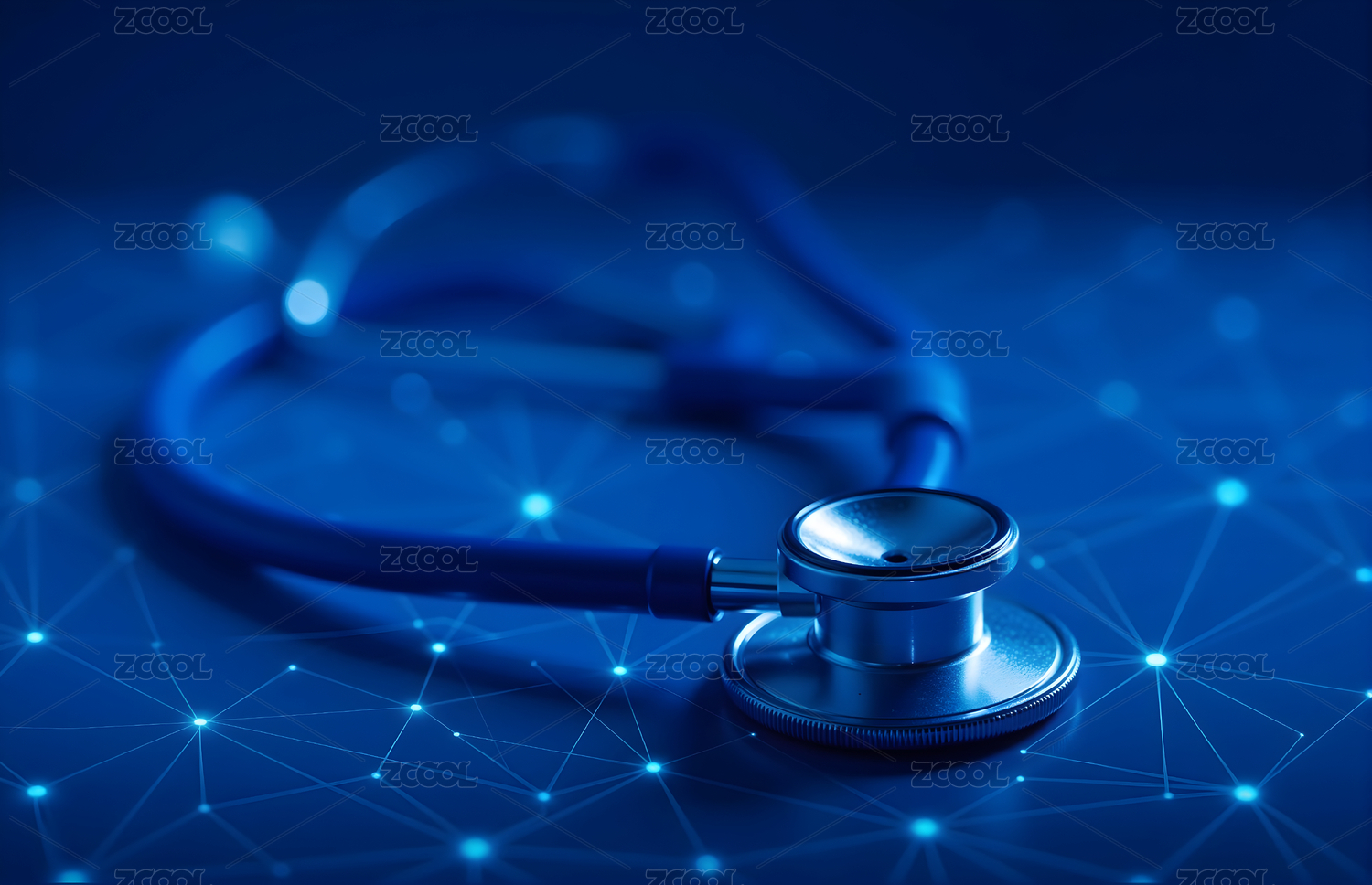 背景,蓝色,黑色,银色,科技,符号,听诊器,界面,波形,心电图