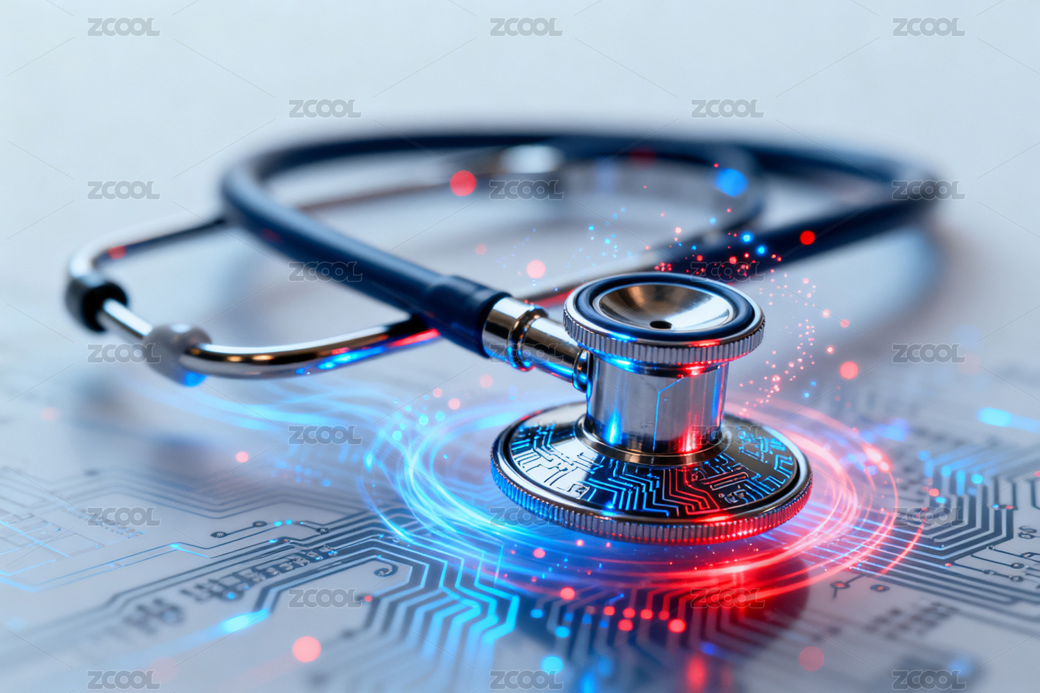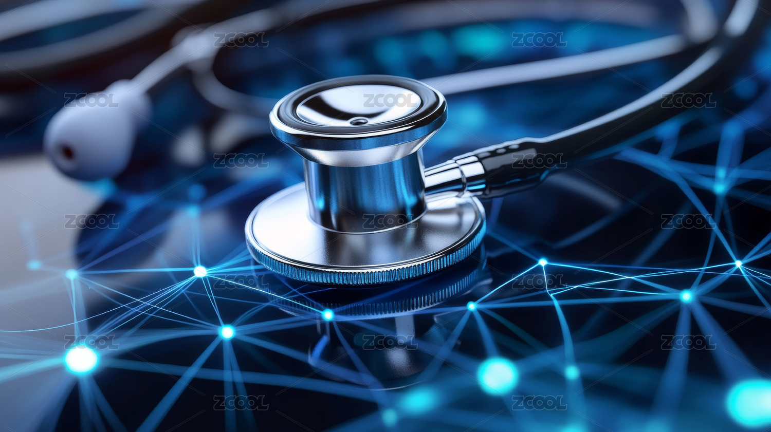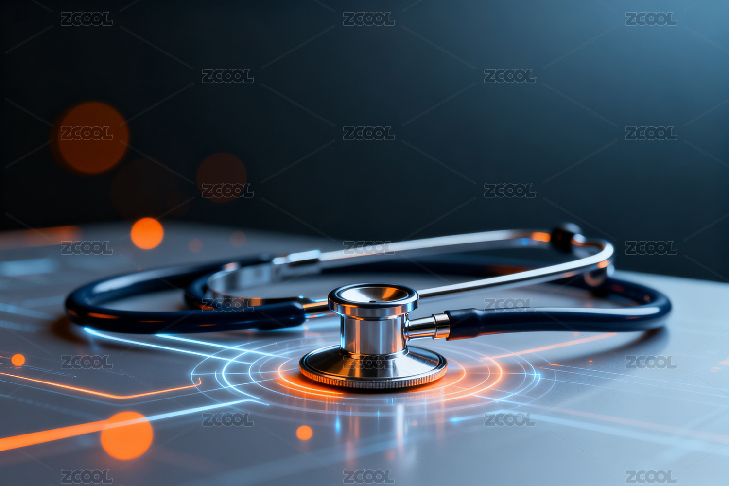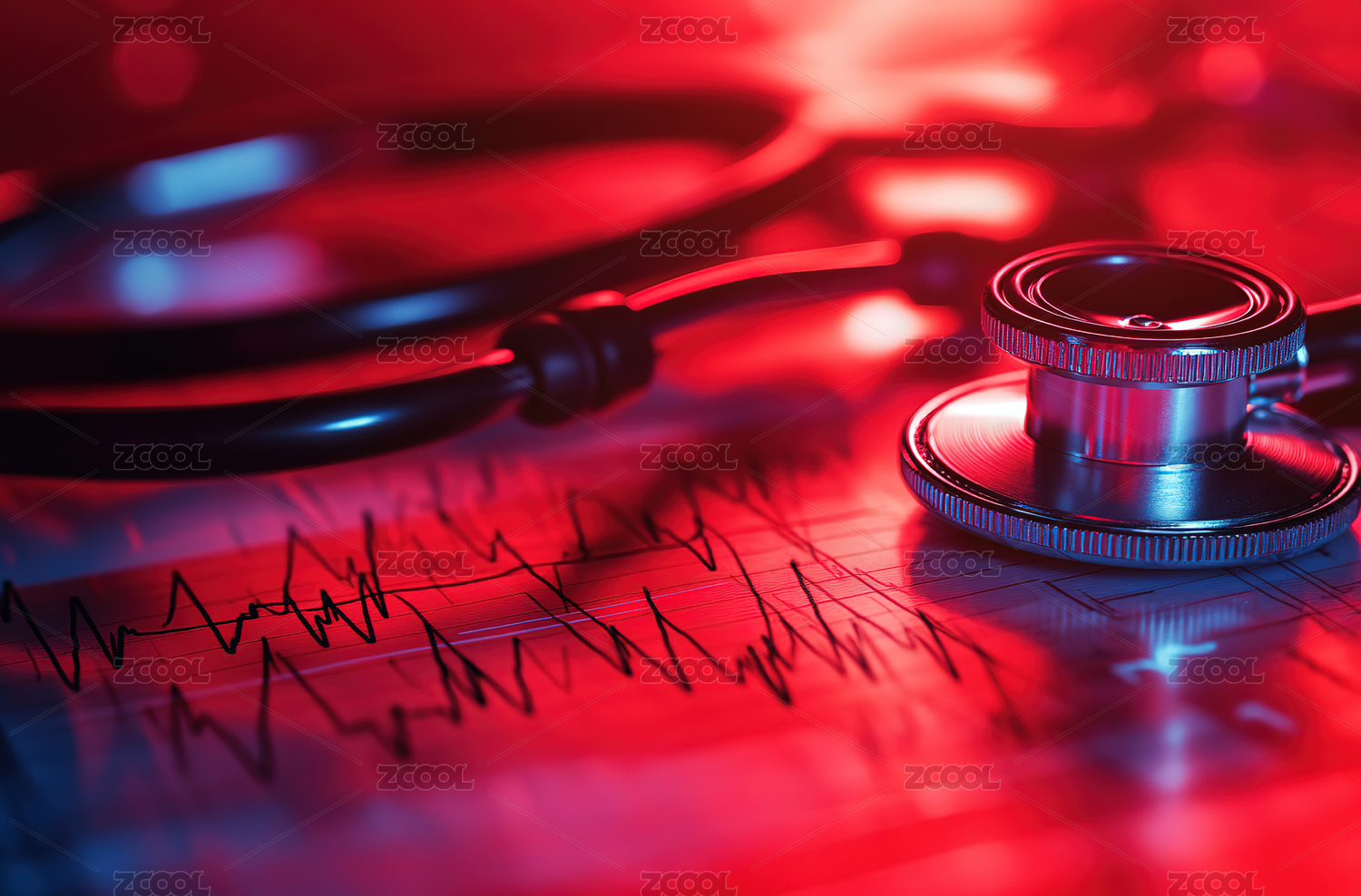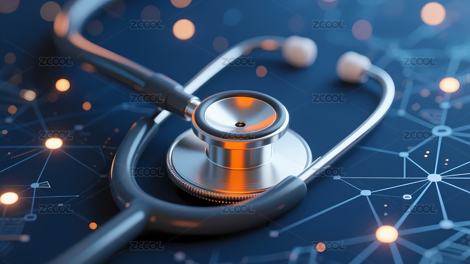 背景,蓝色,黑色,银色,科技,符号,听诊器,界面,波形,心电图