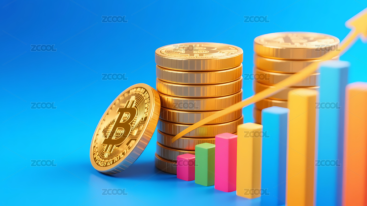 背景,比特币,蓝色,金融,硬币,柱状图,箭头,投资,金币,增长