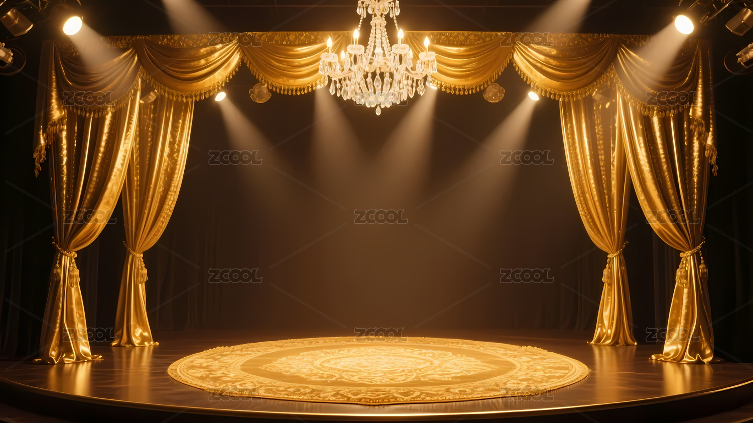 金色舞台窗帘吊灯照明