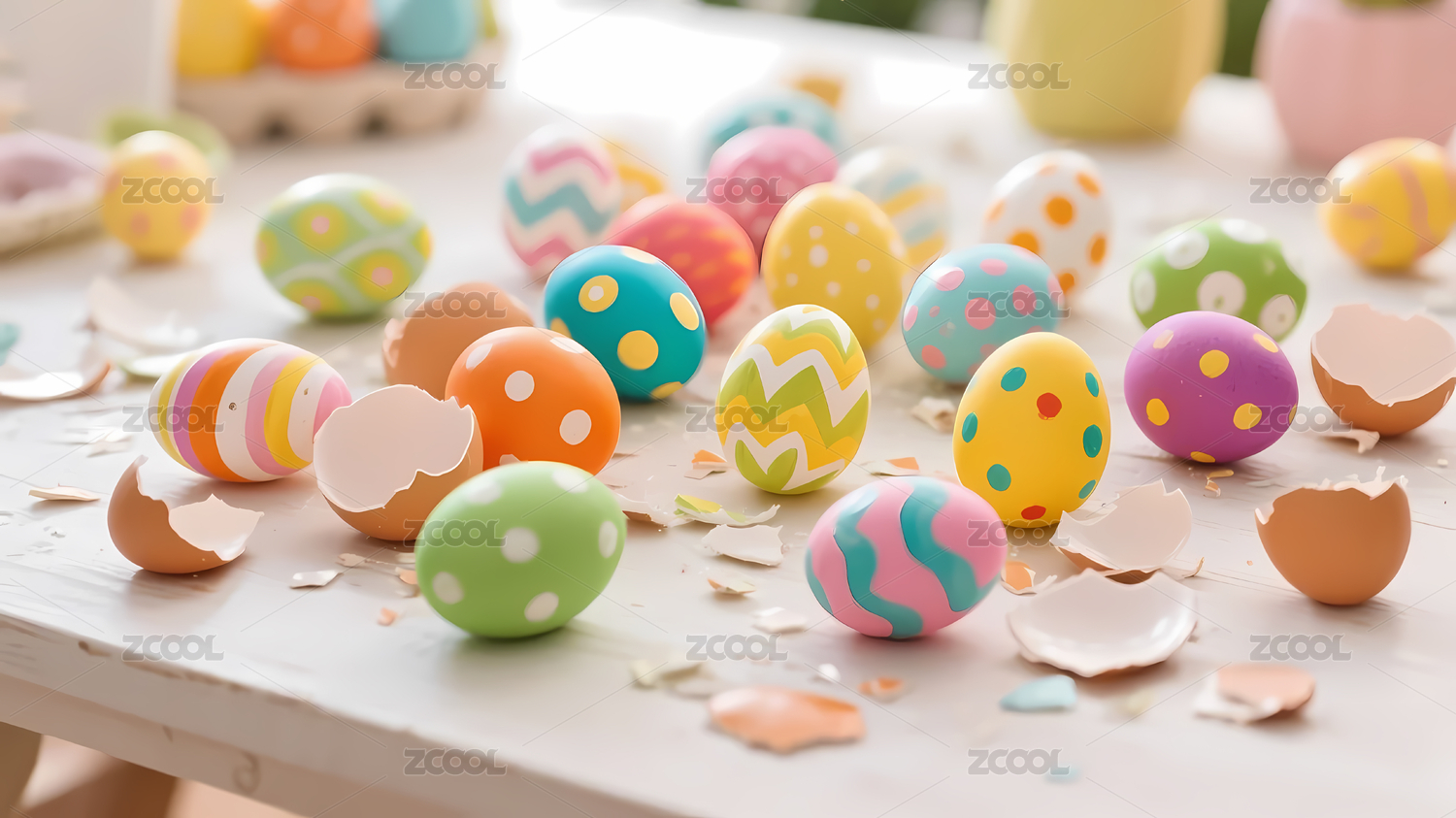 彩点鸡蛋浅绿背景