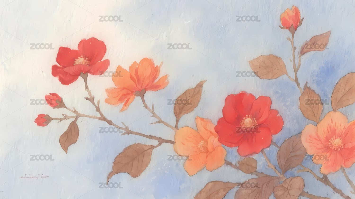 背景,红色,花朵,橙色,叶子,天空,植物,宁静,花苞,淡蓝色