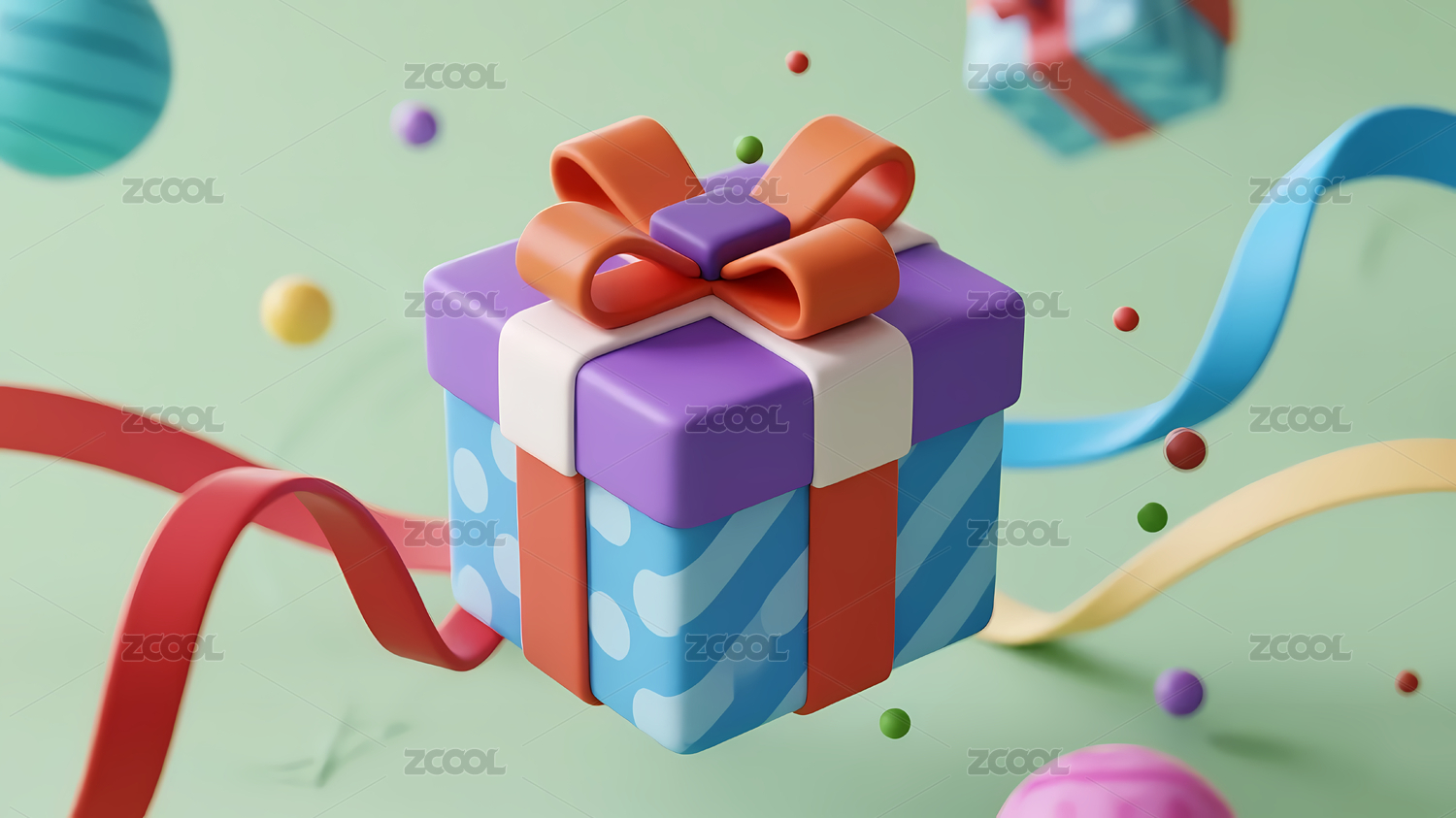 背景,粉色,蓝色,紫色,漂浮,橙色,礼物盒,浅绿色,小球,蝴蝶结